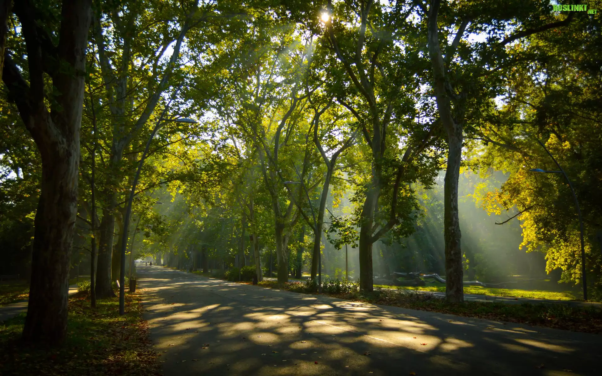 Rośliny: Park, Drzewa, Aleja, Przebijające światło, Zieleń, Lato
