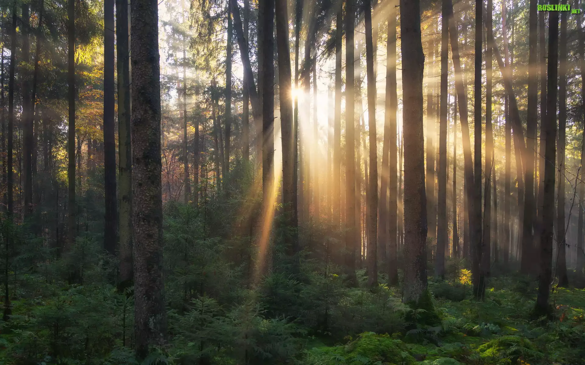 Rośliny: Przebijające światło, Słoneczne, Las, Drzewa, Krzewy