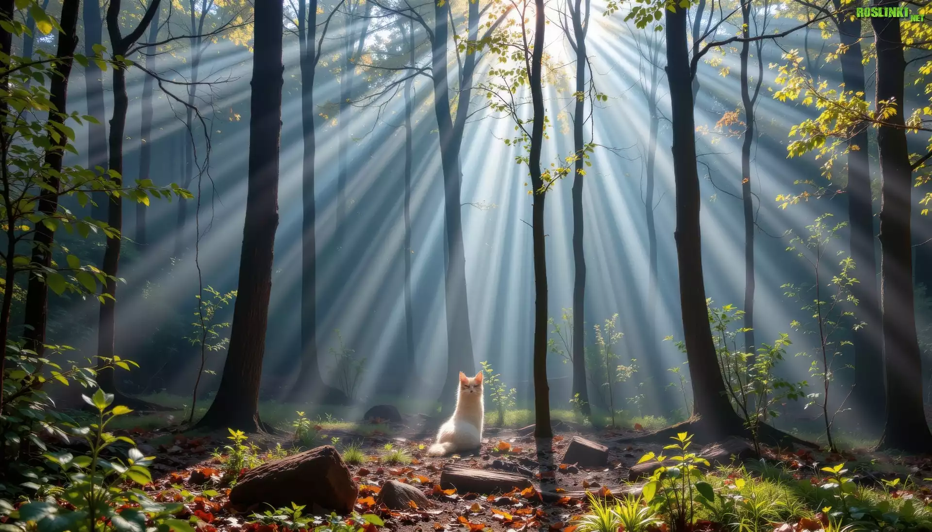 Rośliny: Las, Drzewa, Lis, Przebijające światło, Grafika AI