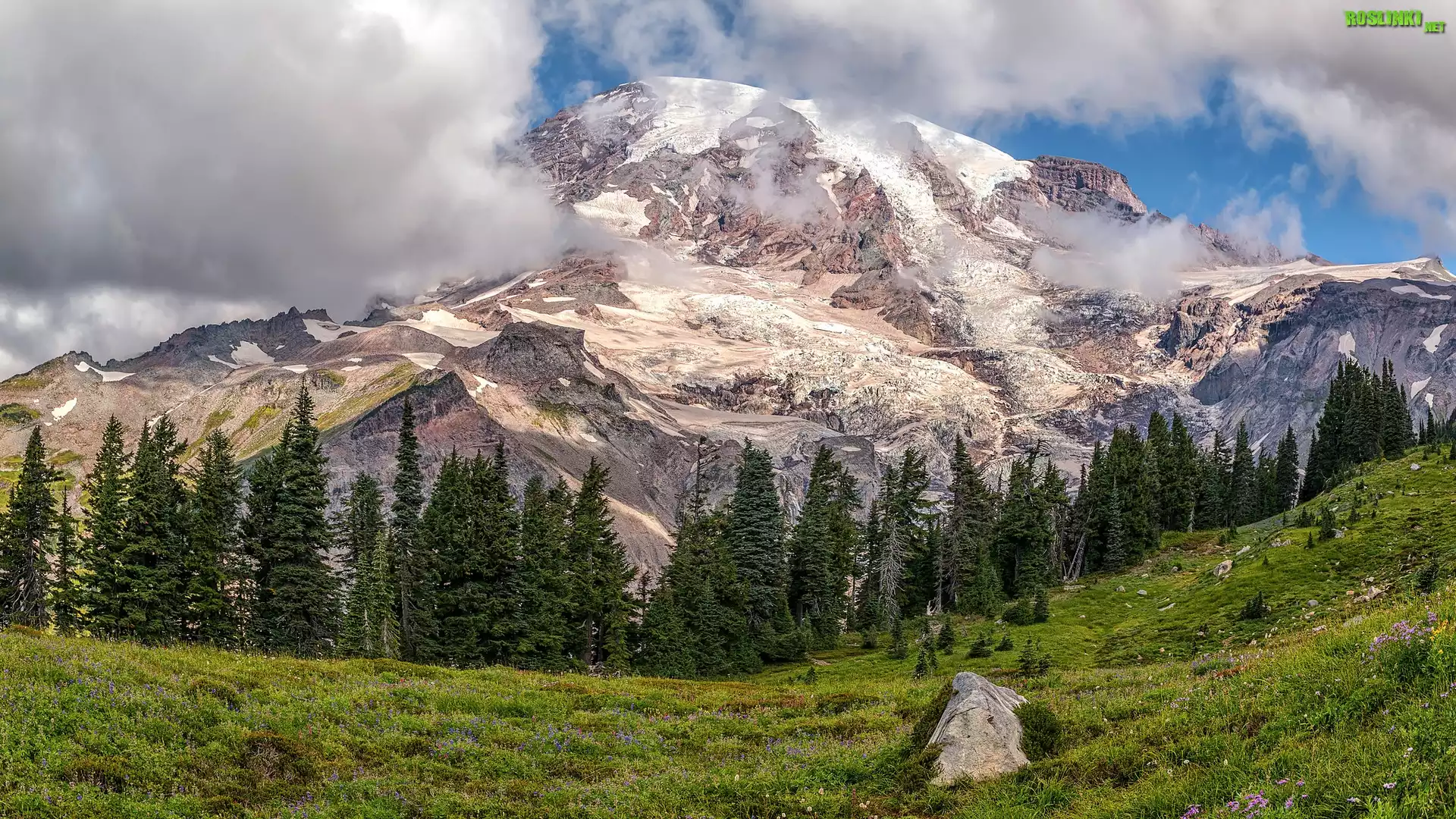 Park Narodowy Mount Rainier, Góra, Szczyt, Mount Rainier, Stan Waszyngton, Stany Zjednoczone, Drzewa |
