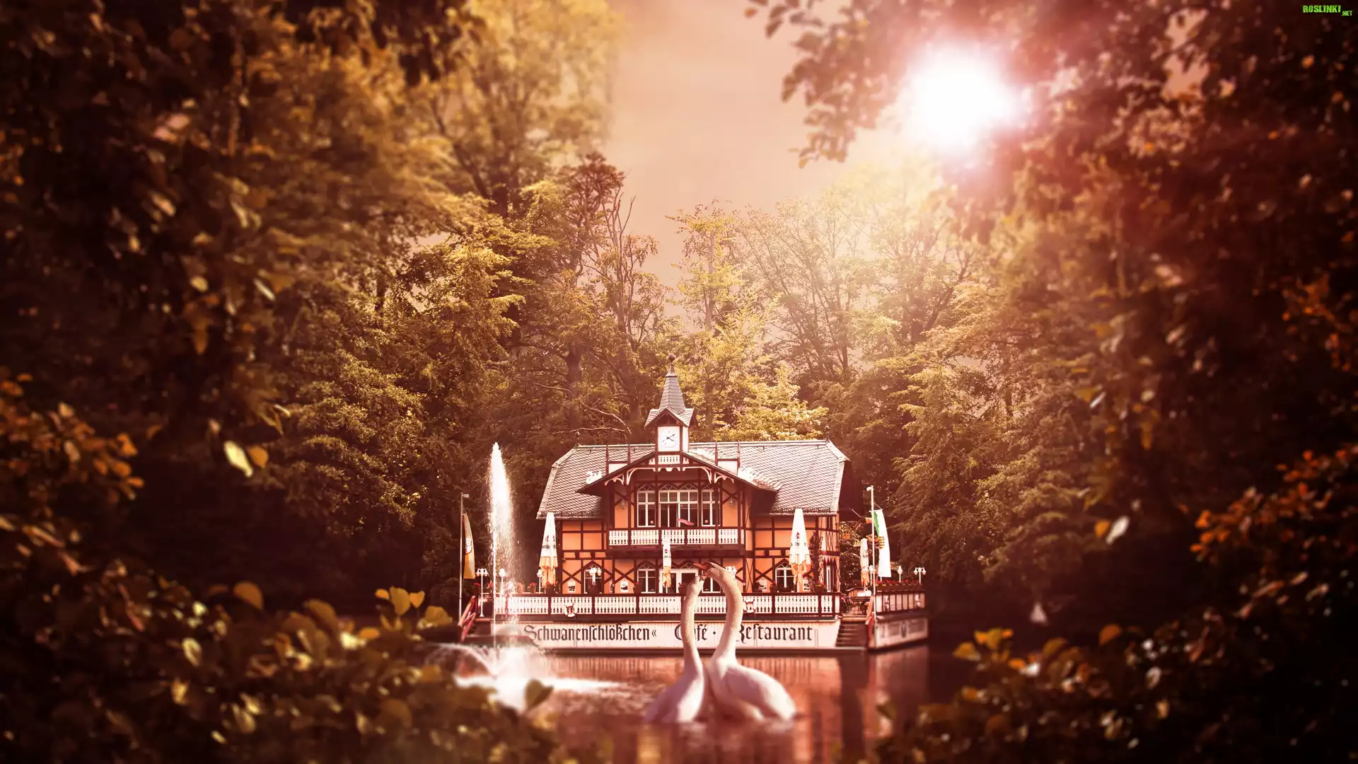 Rośliny: Restauracja, Jezioro, Łabędzie, Drzewa