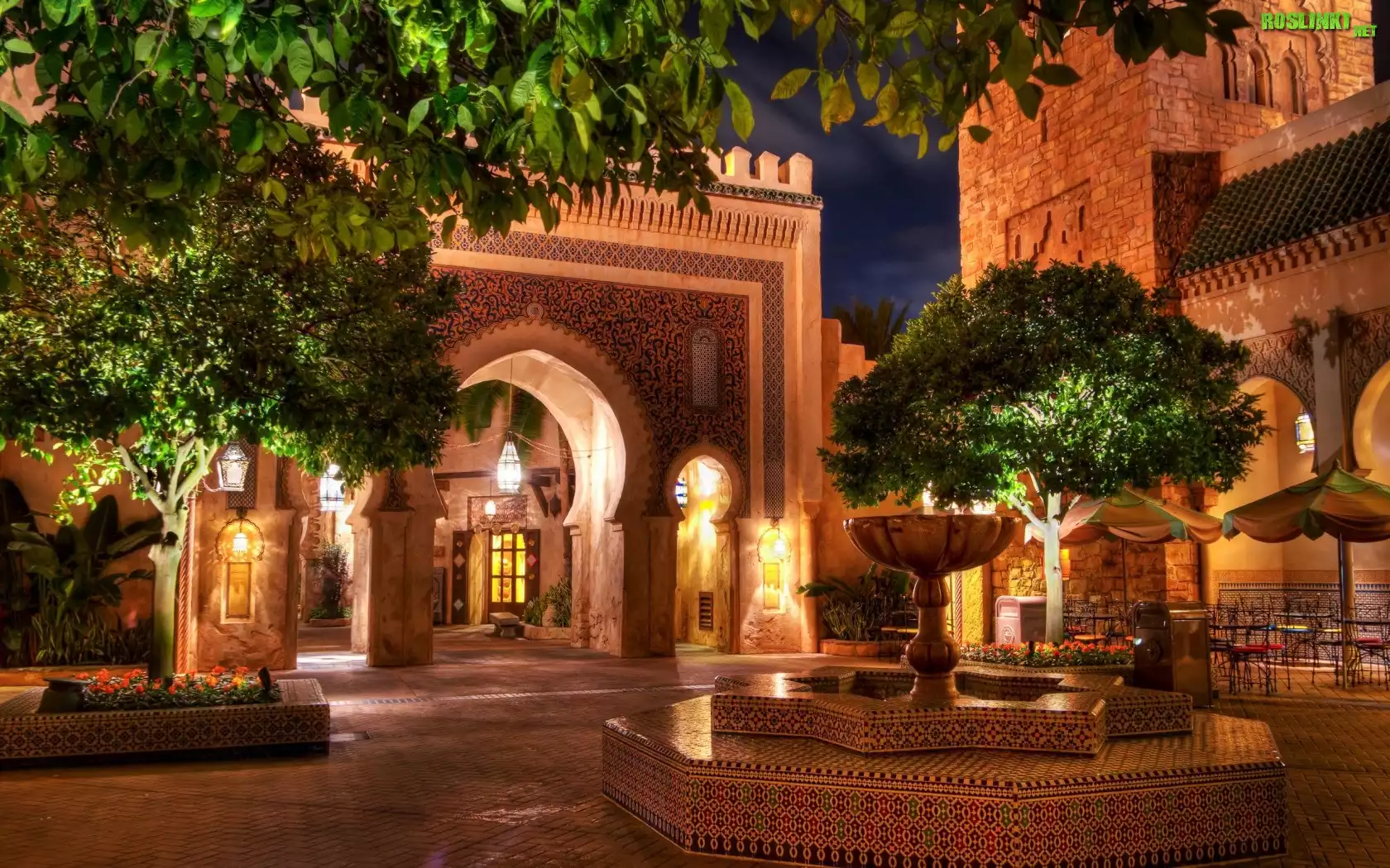 Restauracja, Kawiarnia, Fontanna, Drzewa