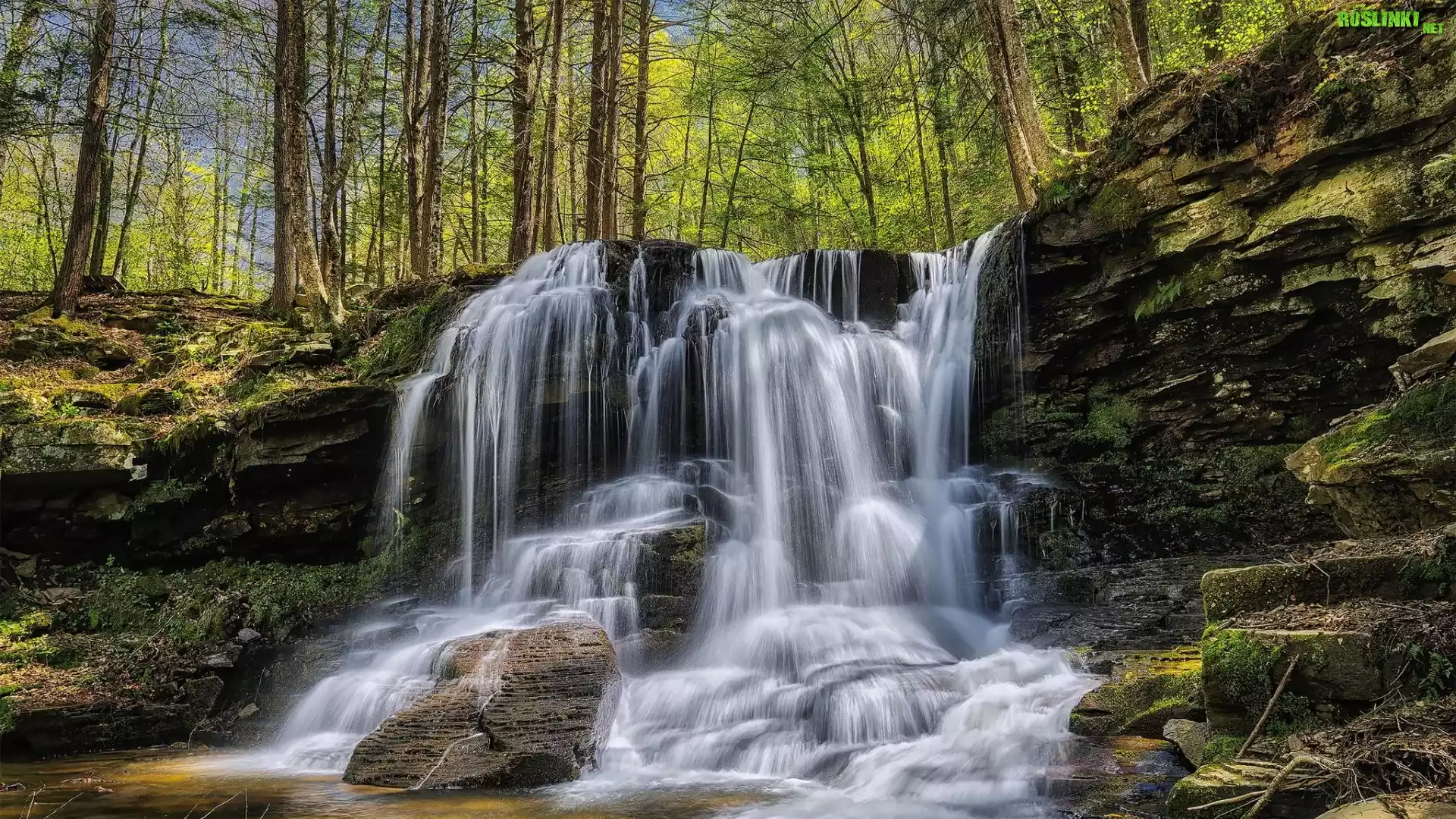 Rośliny: Park stanowy Ricketts Glen, Drzewa, Skały, Wodospad, Stan Pensylwania, Stany Zjednoczone