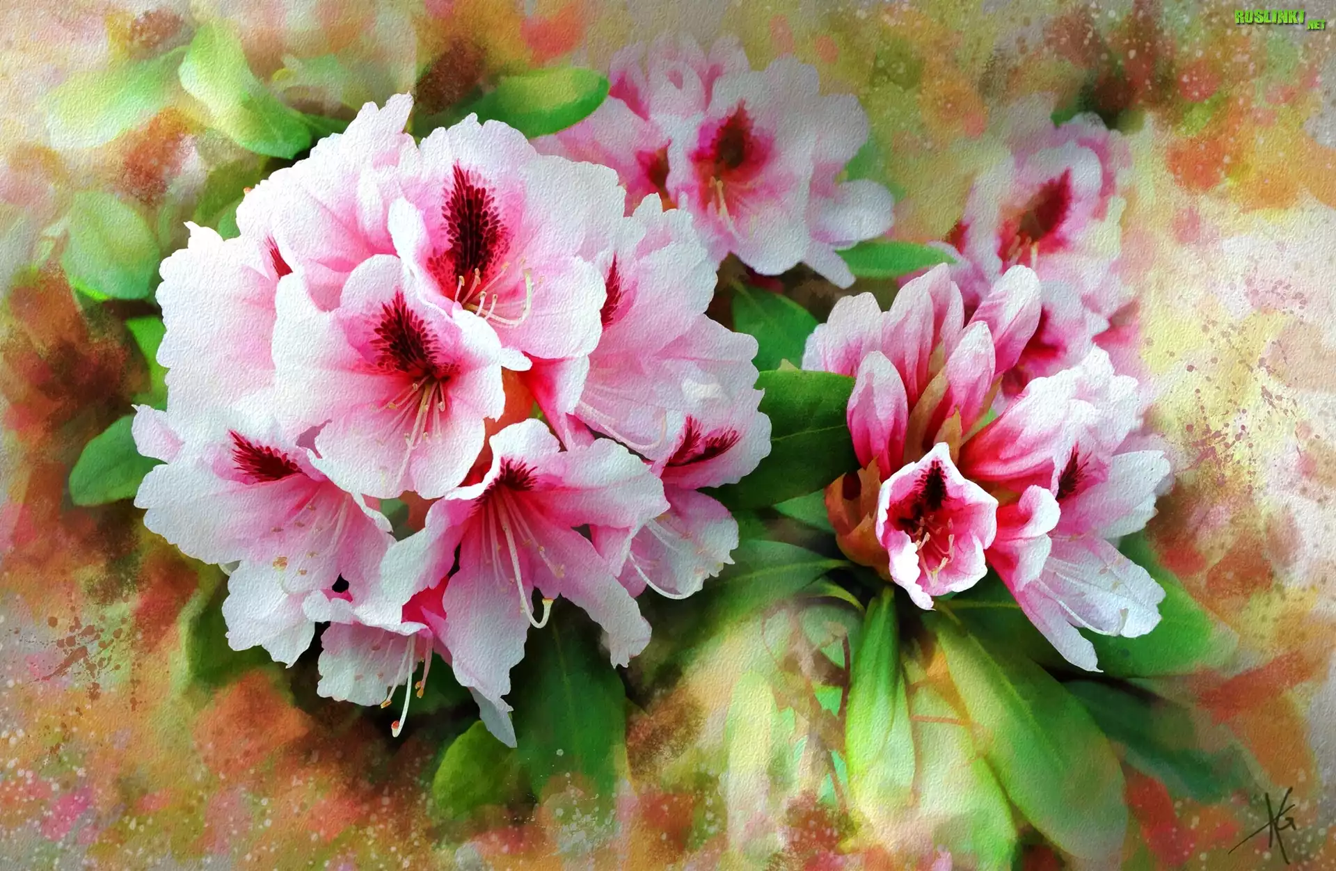 Rośliny: Rododendron, Różanecznik, Kwiaty, Akwarela, Obraz, Alberto Guillen