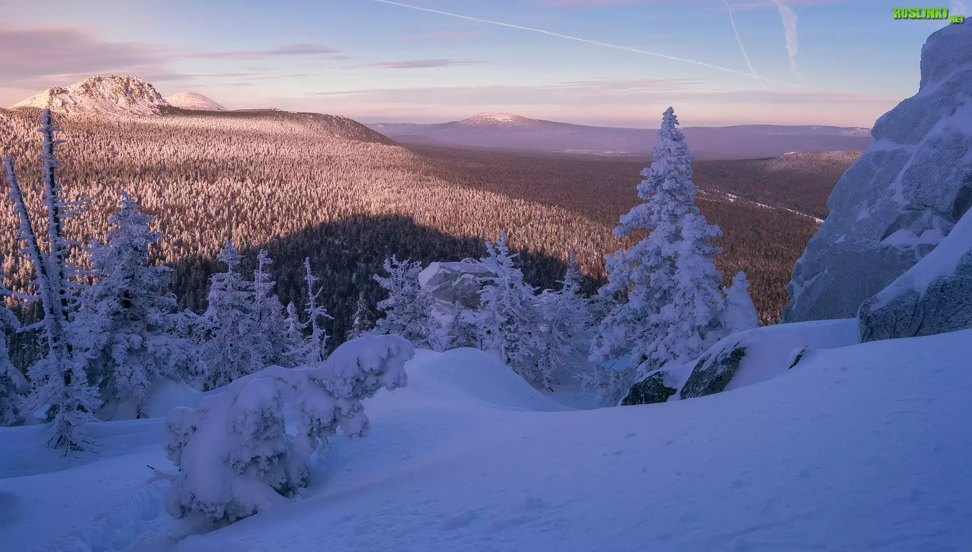 Rośliny: Zima, Góry, Drzewa, Park Narodowy Taganaj, Obwód czelabiński, Rosja