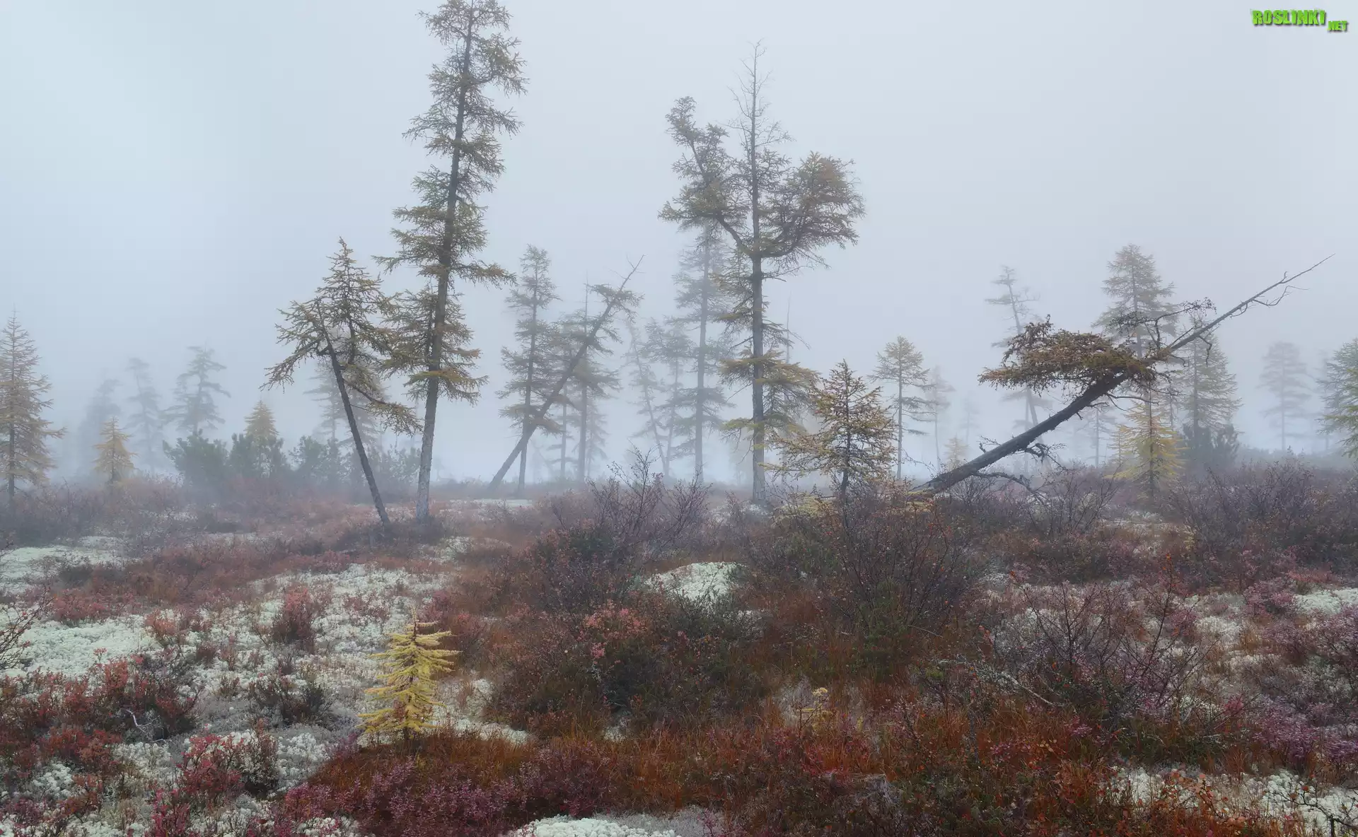 Rośliny: Jesień, Mgła, Drzewa, Rośliny, Krzewy, Kołyma, Obwód magadański, Rosja