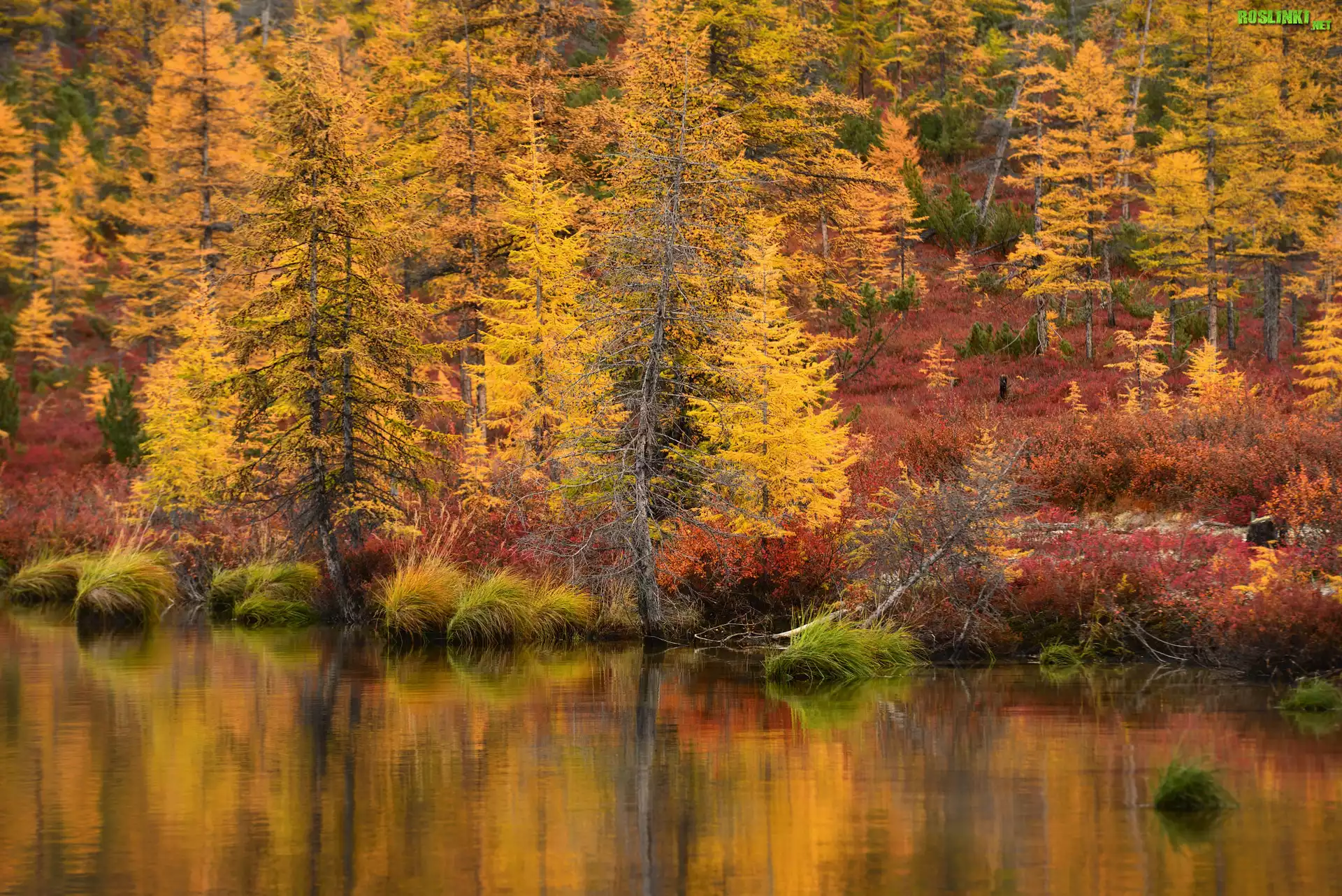 Rośliny: Jesień, Drzewa, Krzewy, Jezioro Jack London, Obwód magadański, Rosja