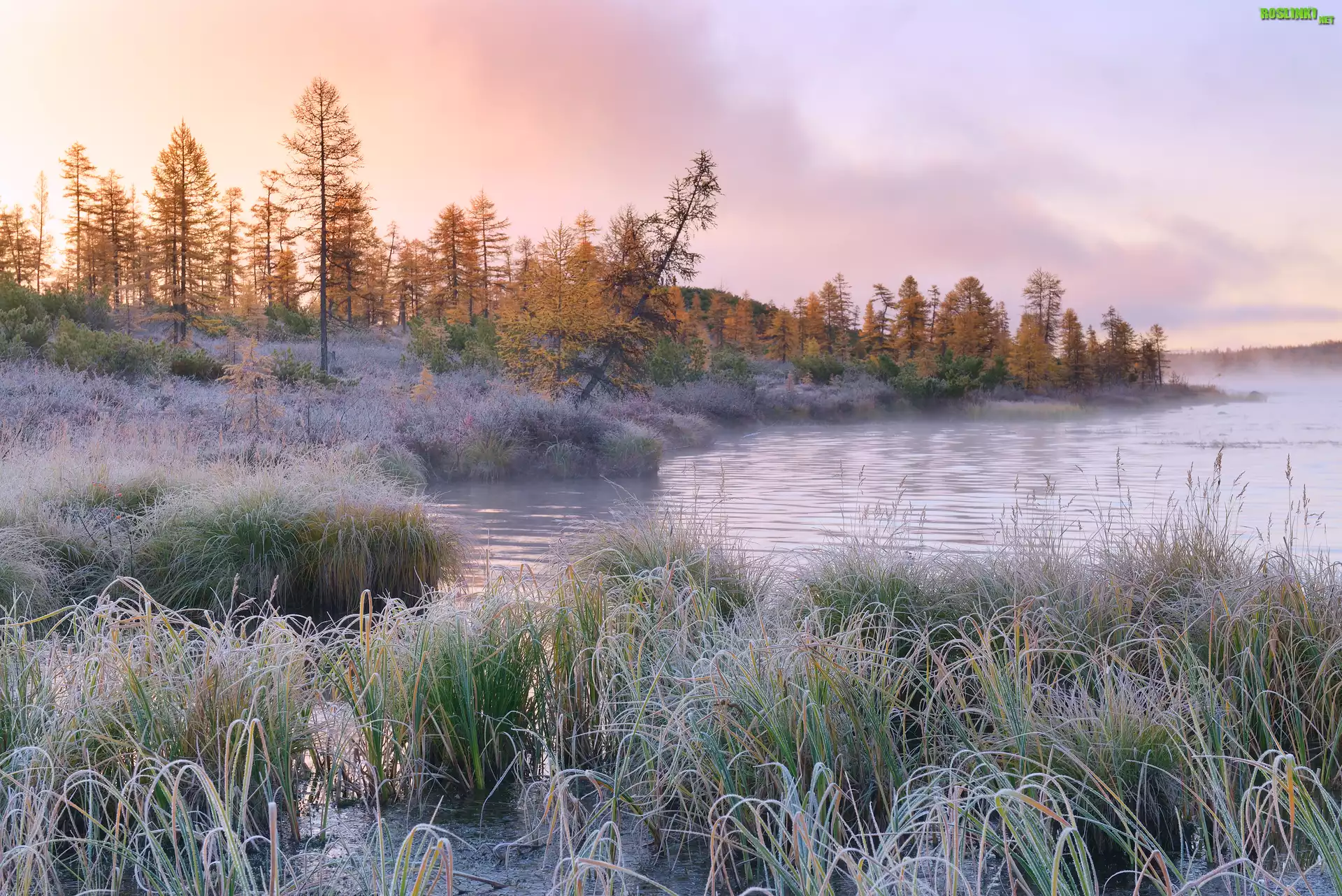 Rośliny: Jezioro Jack London, Rośliny, Szron, Kołyma, Obwód magadański, Rosja