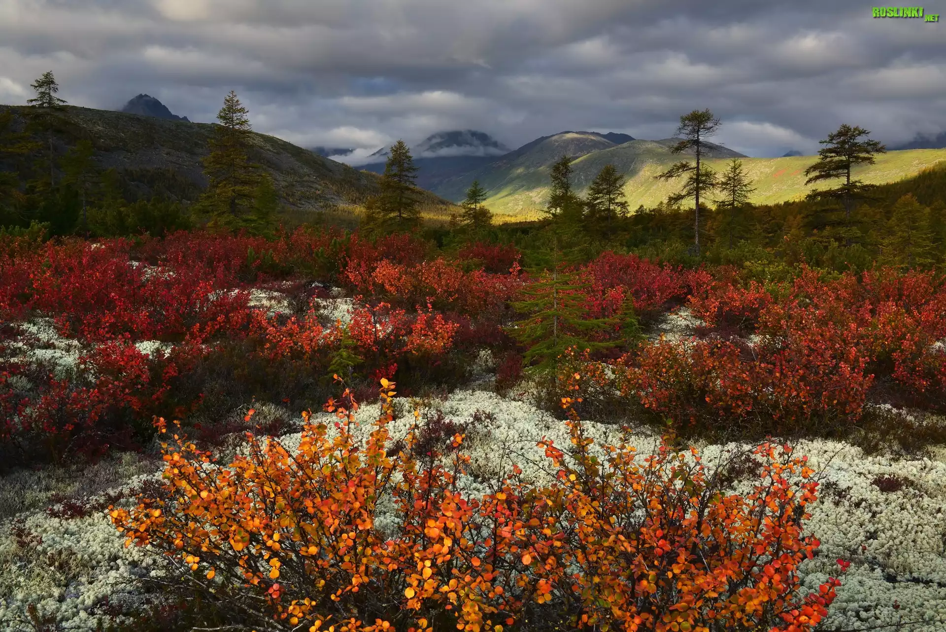 Rośliny: Góry Kołymskie, Drzewa, Krzewy, Rośliny, Chmury, Kołyma, Obwód magadański, Rosja