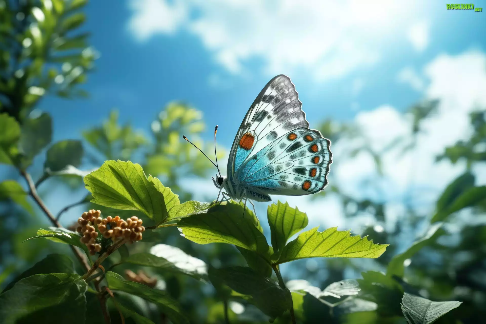 Rośliny: Motyl, Roślina, Liście, Niebo, Grafika