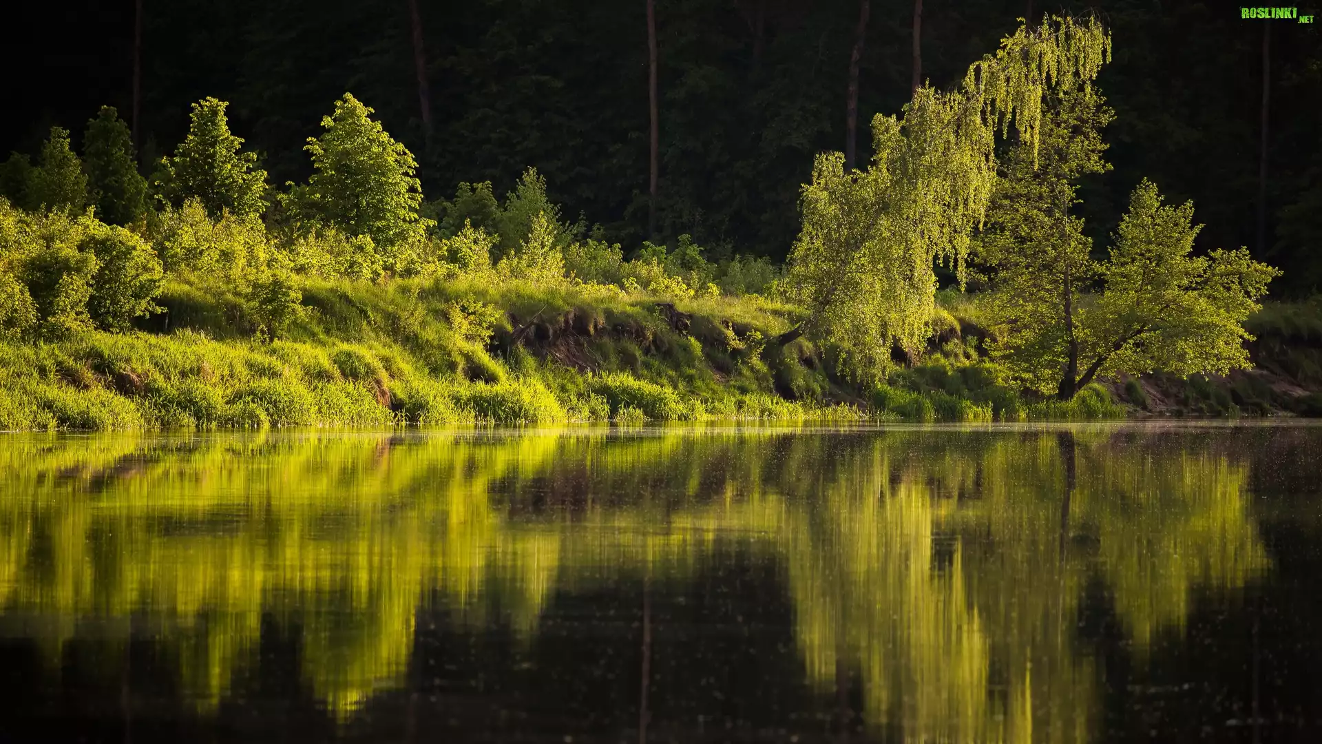 Rośliny: Lato, Drzewa, Krzewy, Roślinność, Jezioro, Odbicie