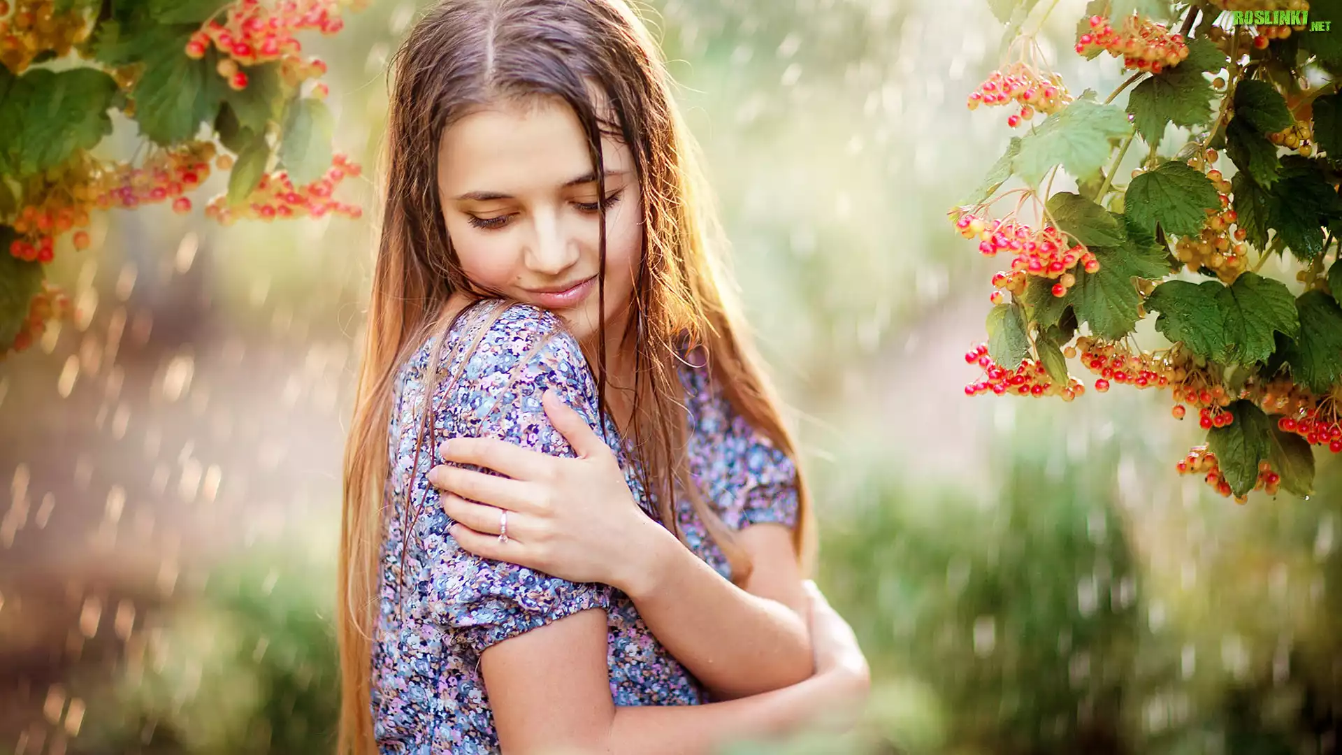Rośliny: Dziewczyna, Rośliny, Deszcz