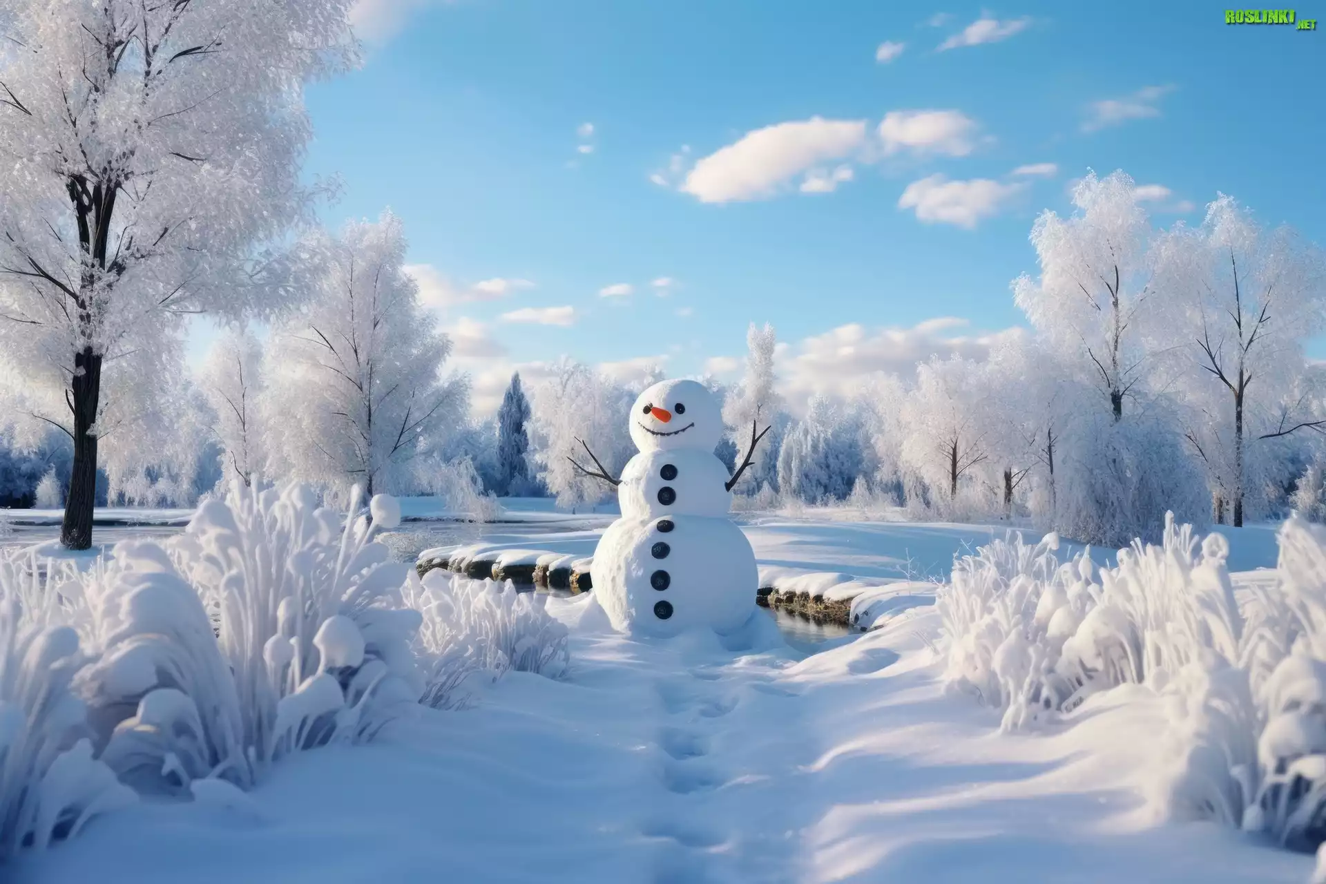 Rośliny: Zima, Bałwan, Oszronione, Rośliny, Drzewa, Grafika
