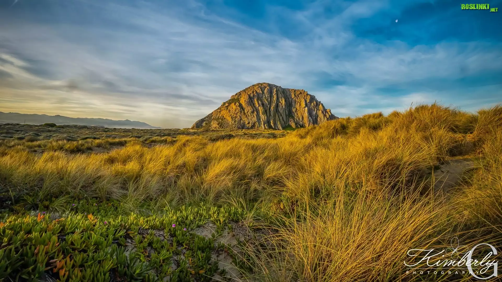 Rośliny: Góra, Morro Rock, Skała, Żółta, Trawa, Rośliny, Księżyc, Kalifornia, Stany Zjednoczone