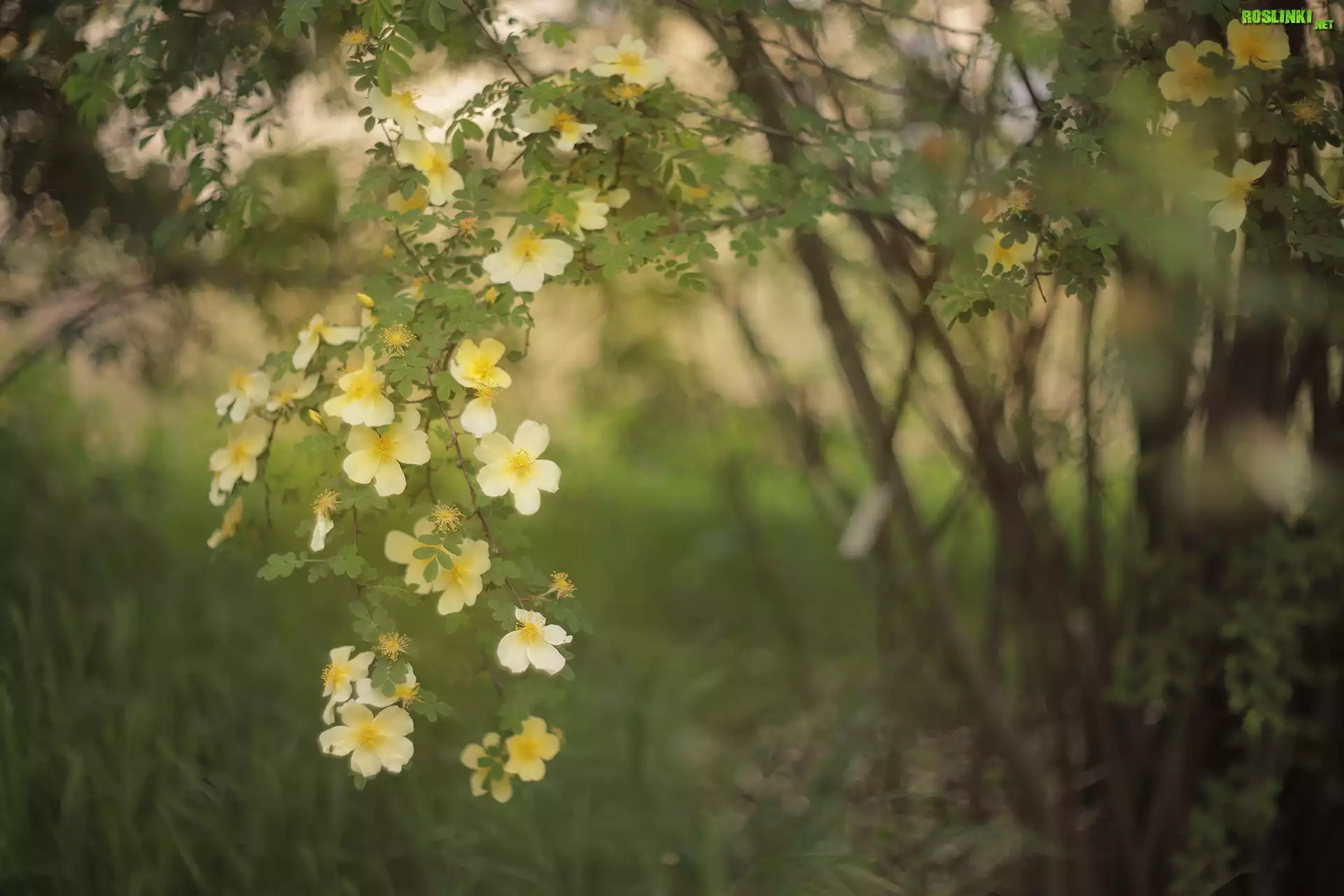 Rośliny: Dzikie róże, Krzew, Żółte, Kwiaty