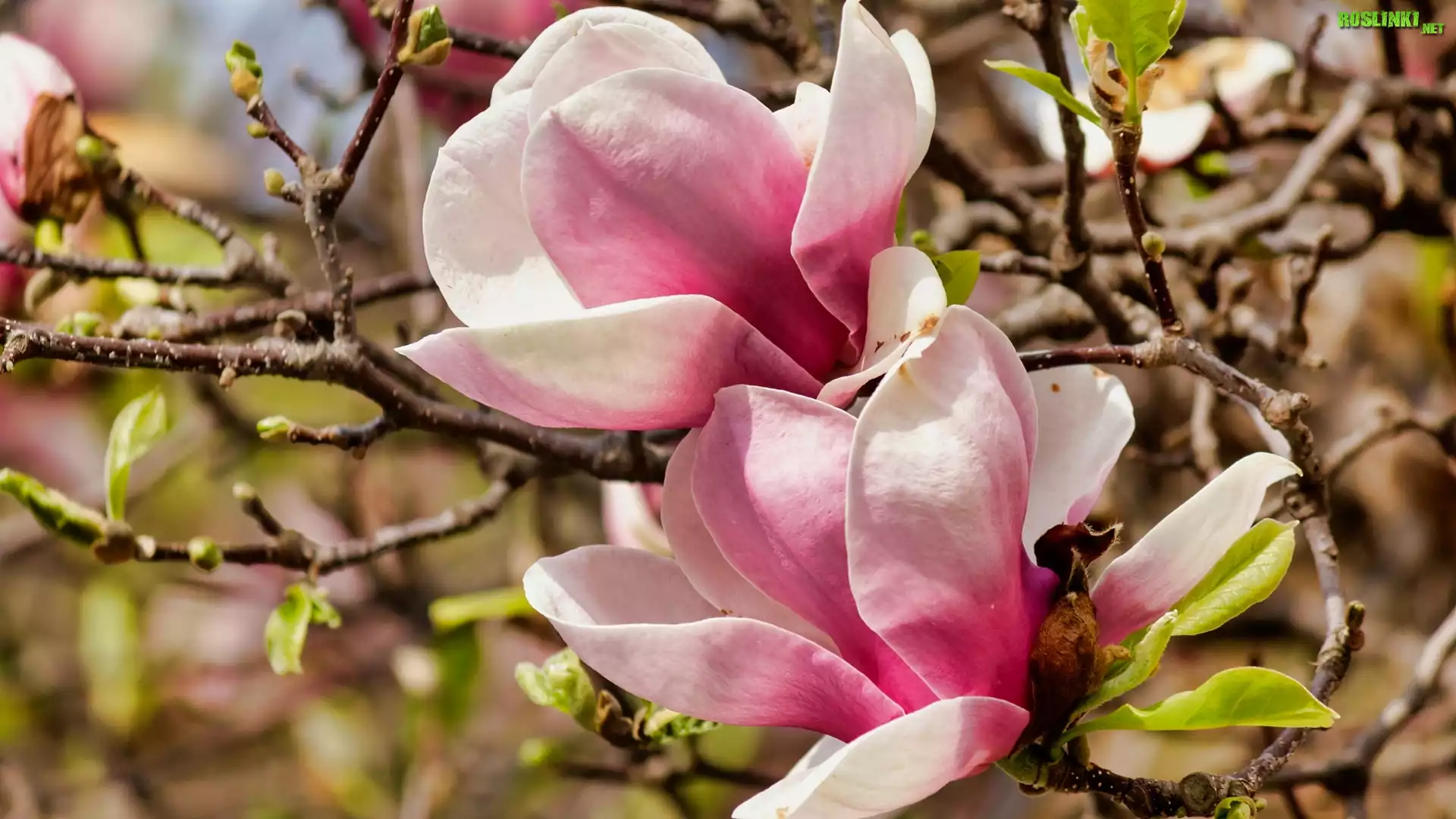 Rozkwitające, Różowe, Kwiaty, Magnolia, Gałązki