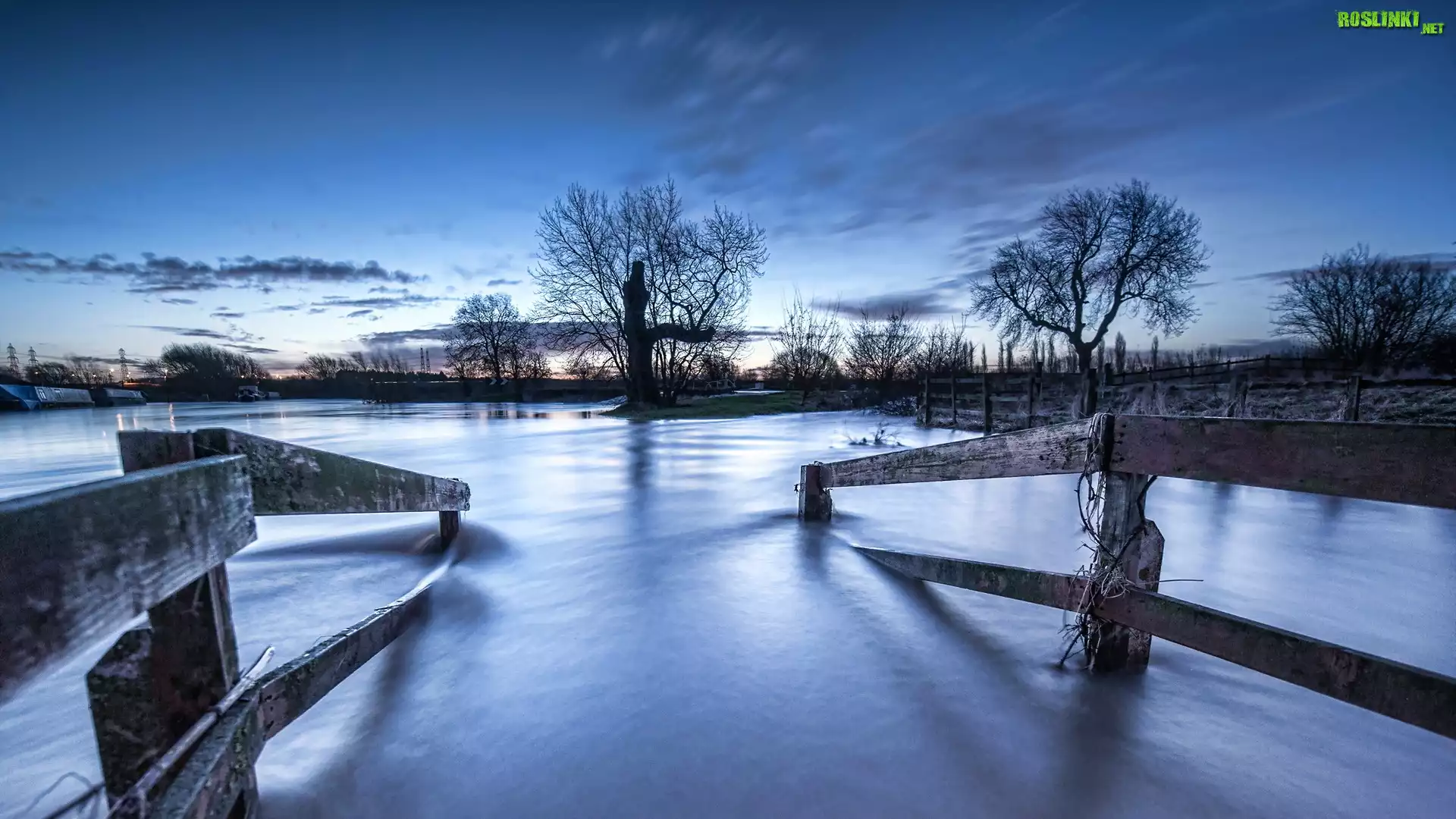 Rozlana, Rzeka, Drzewa, Zmierzch