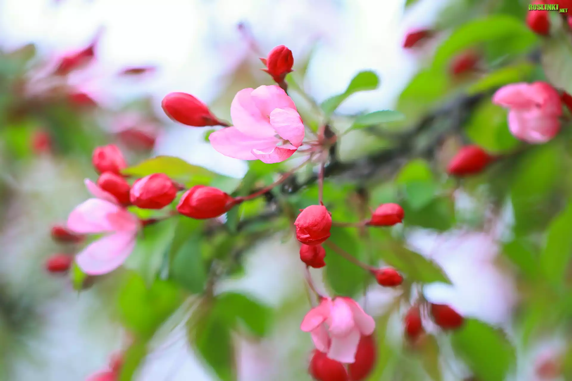 Różowe, Kwiaty, Pąki, Drzewo, Owocowe