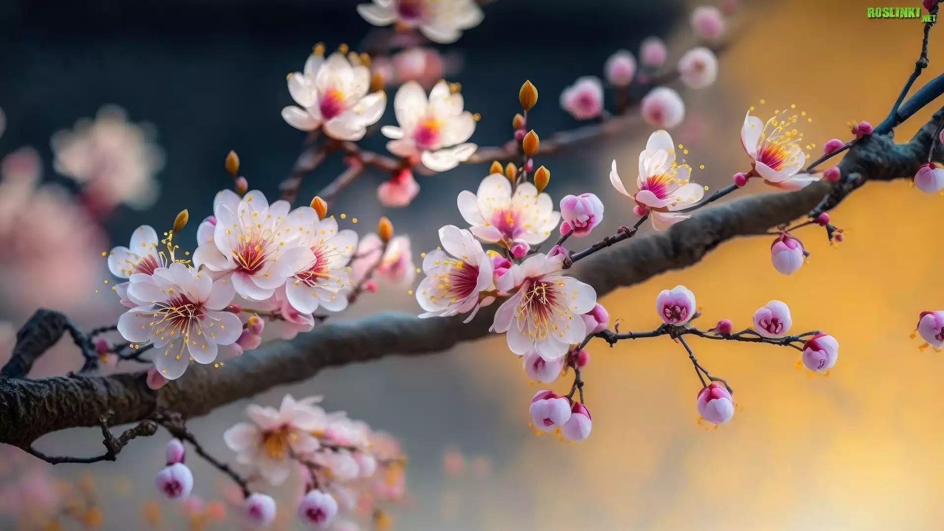Rośliny: Drzewo owocowe, Gałąź, Różowe, Kwiaty, Grafika AI