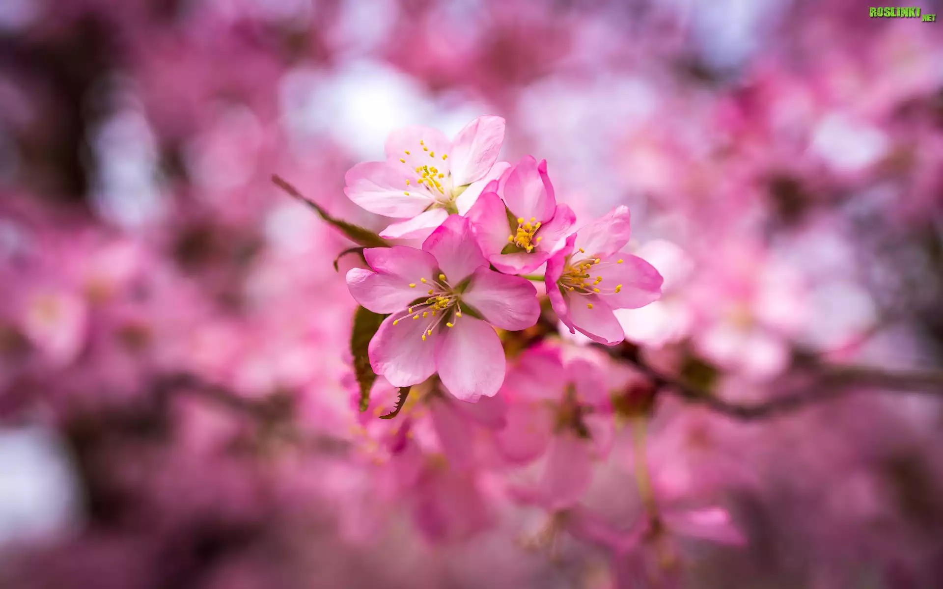 Rośliny: Gałązka, Różowe, Kwiaty, Drzewo owocowe, Rozmyte tło