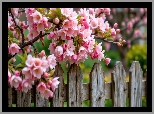 Drzewo owocowe, Gałązki, Różowe, Kwiaty, Listki, Płot
