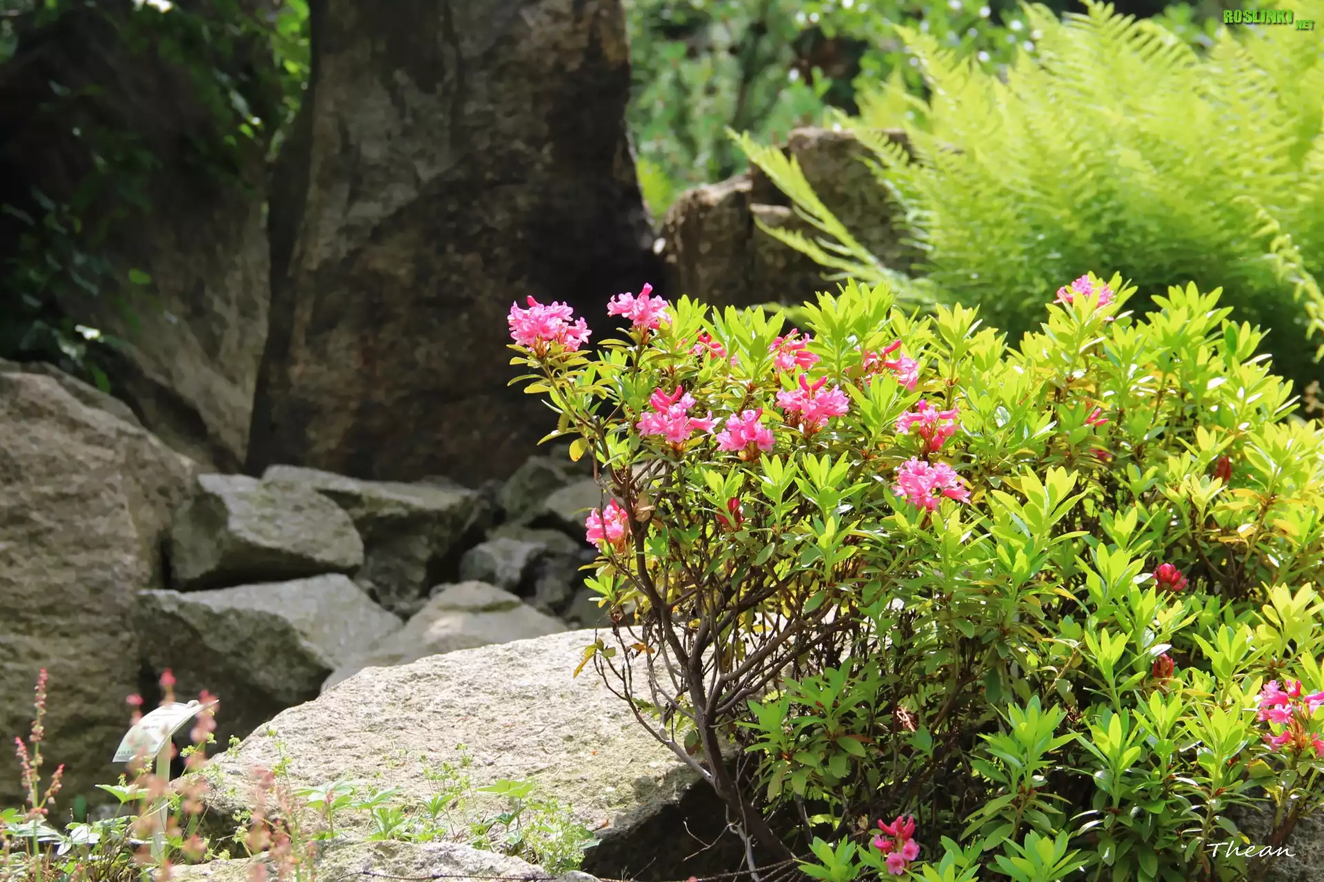 Rośliny: Różowe, Kwiaty, Krzewy, Kamienie