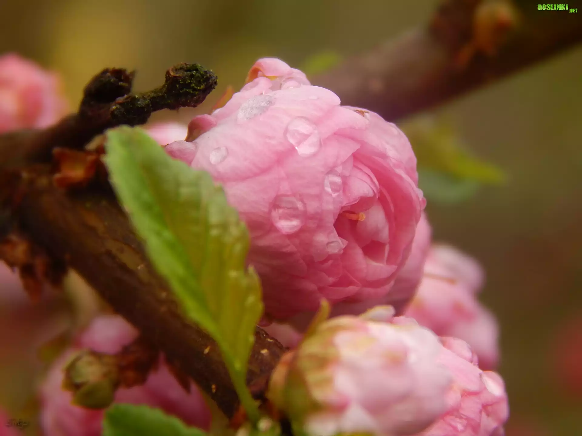 Rośliny: Różowe, Kwiatki, Migdałek, Krople