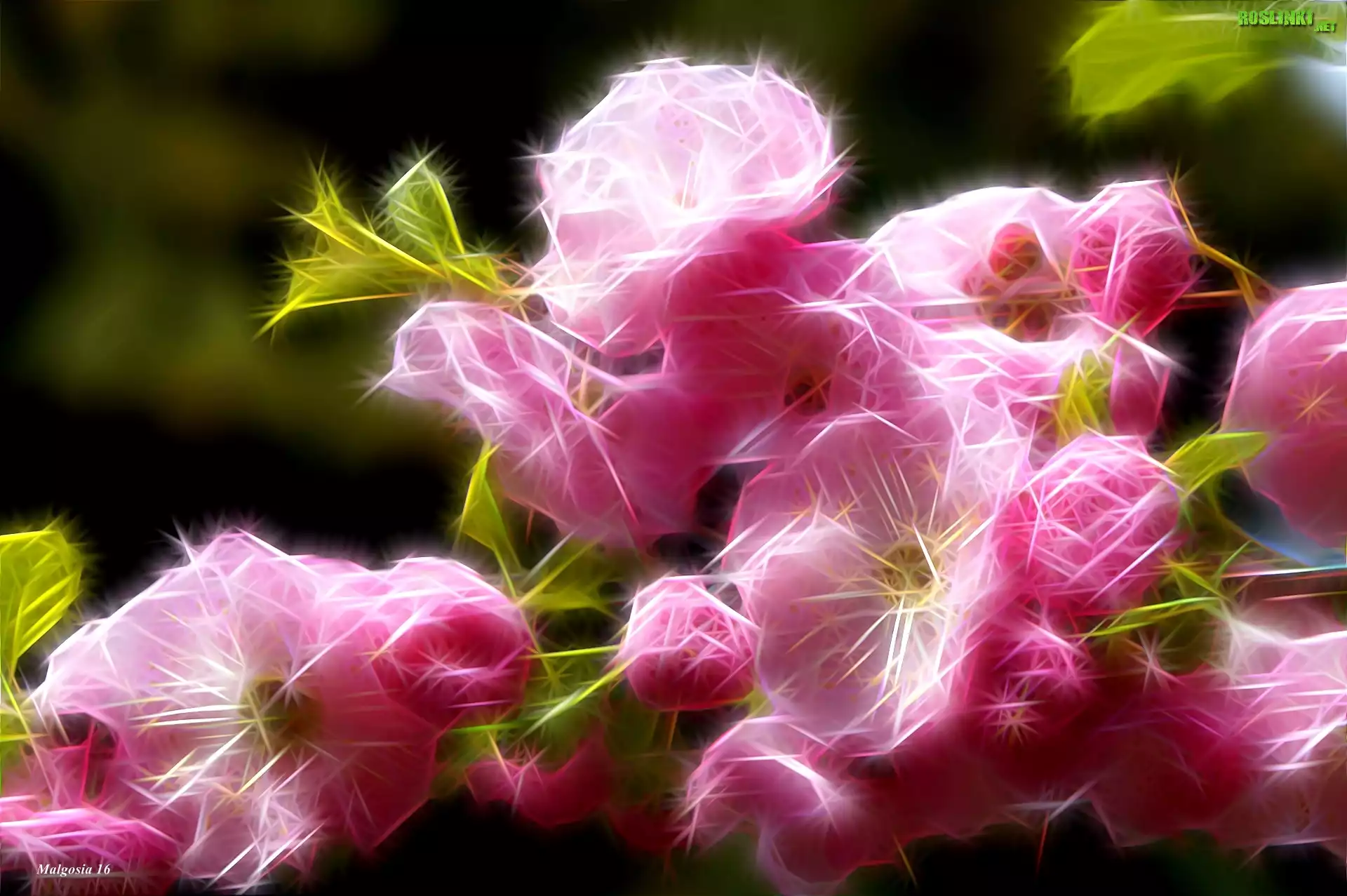 Rośliny: Różowy, Migdałek, Kwiaty, Fractalius