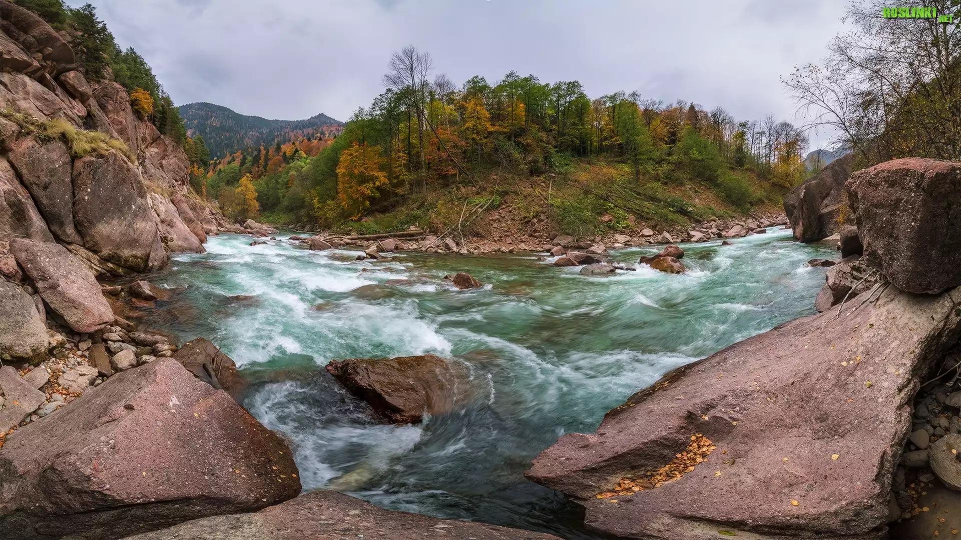 Rośliny: Rwąca, Rzeka, Skały, Kamienie, Drzewa