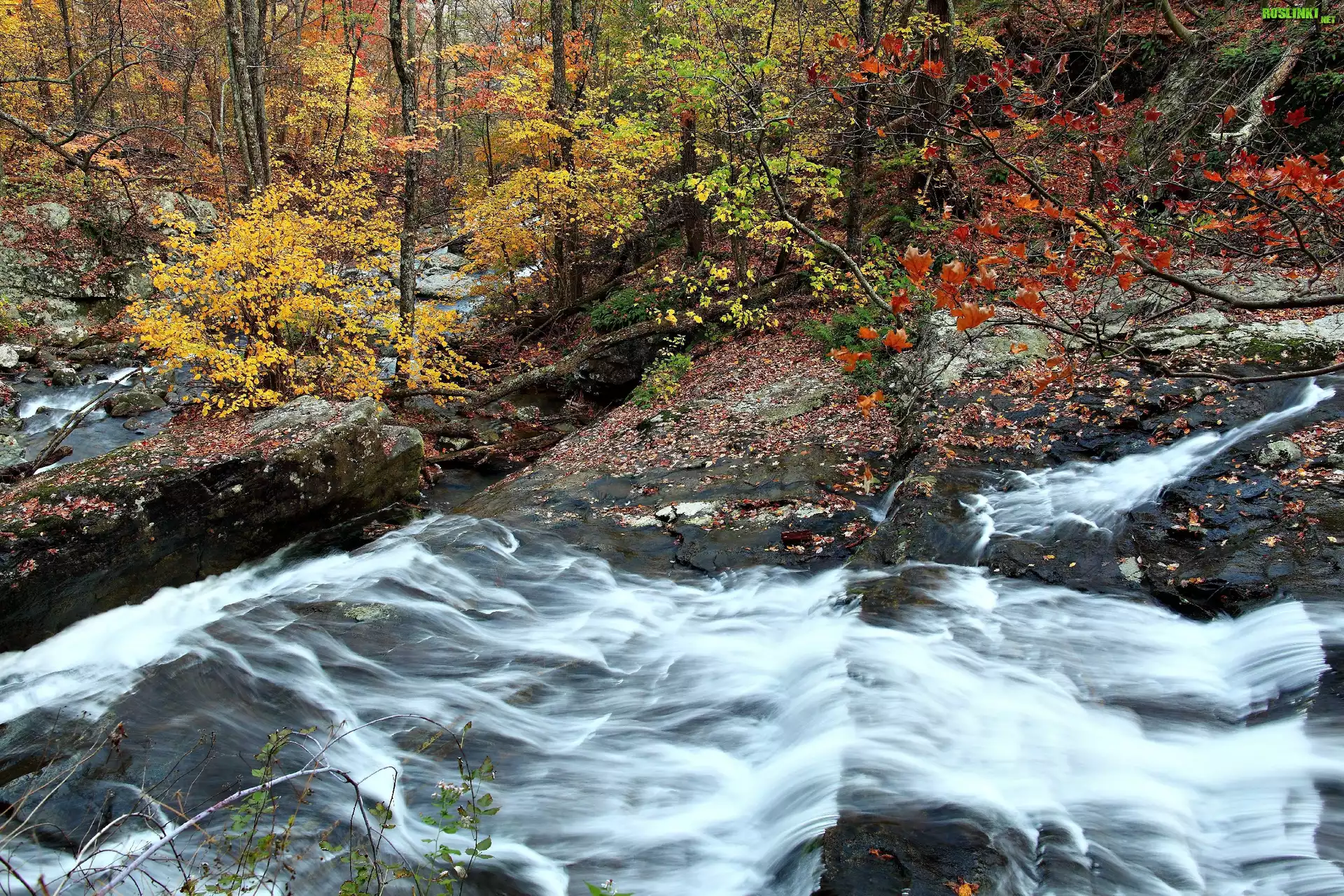 Rośliny: Rwąca, Rzeka, Drzewa, Kolorowe, Liście