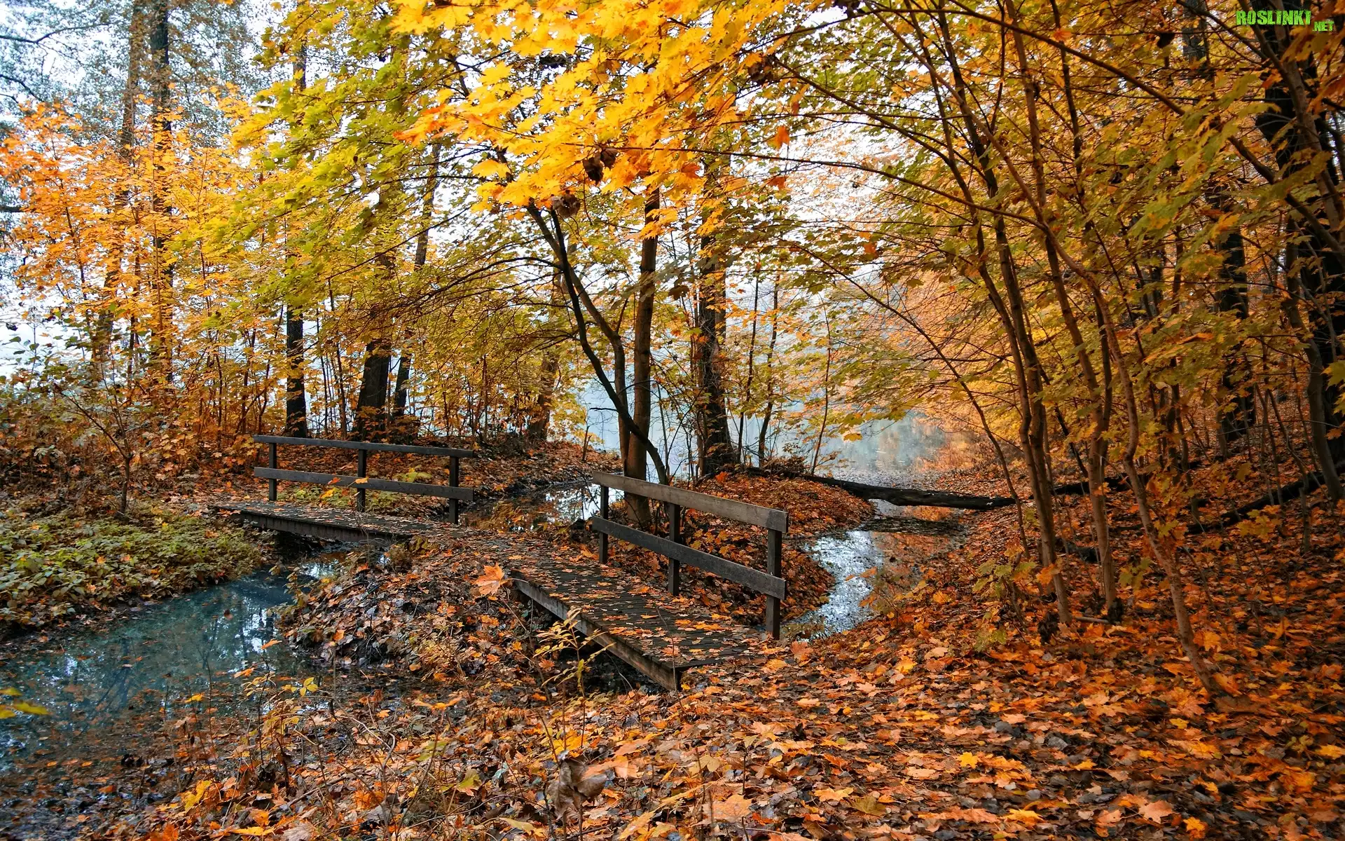Rośliny: Rzeczka, Drewniany, Mostek, Jesień