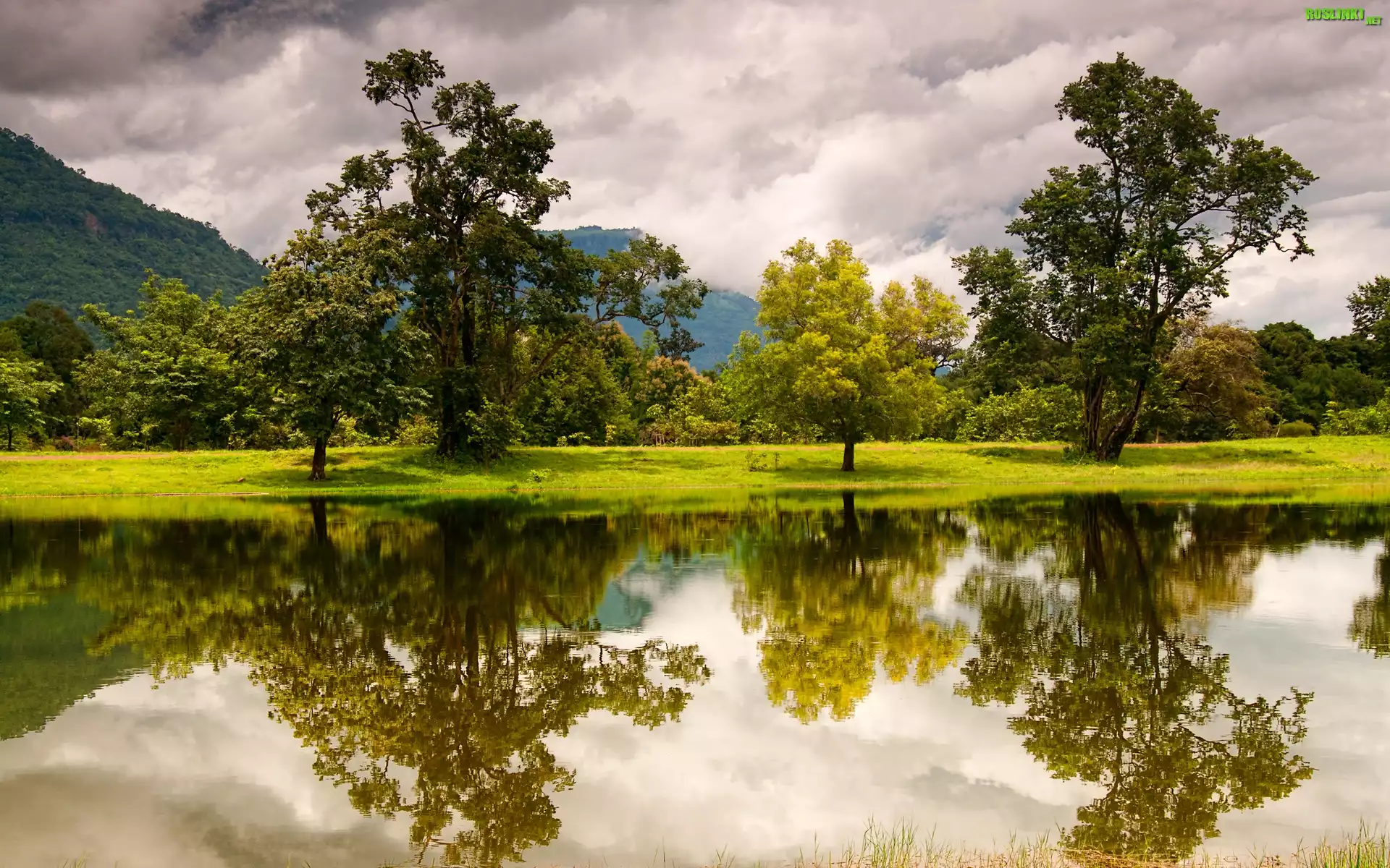Rośliny: Rzeka, Drzewa, Łąka, Chmury