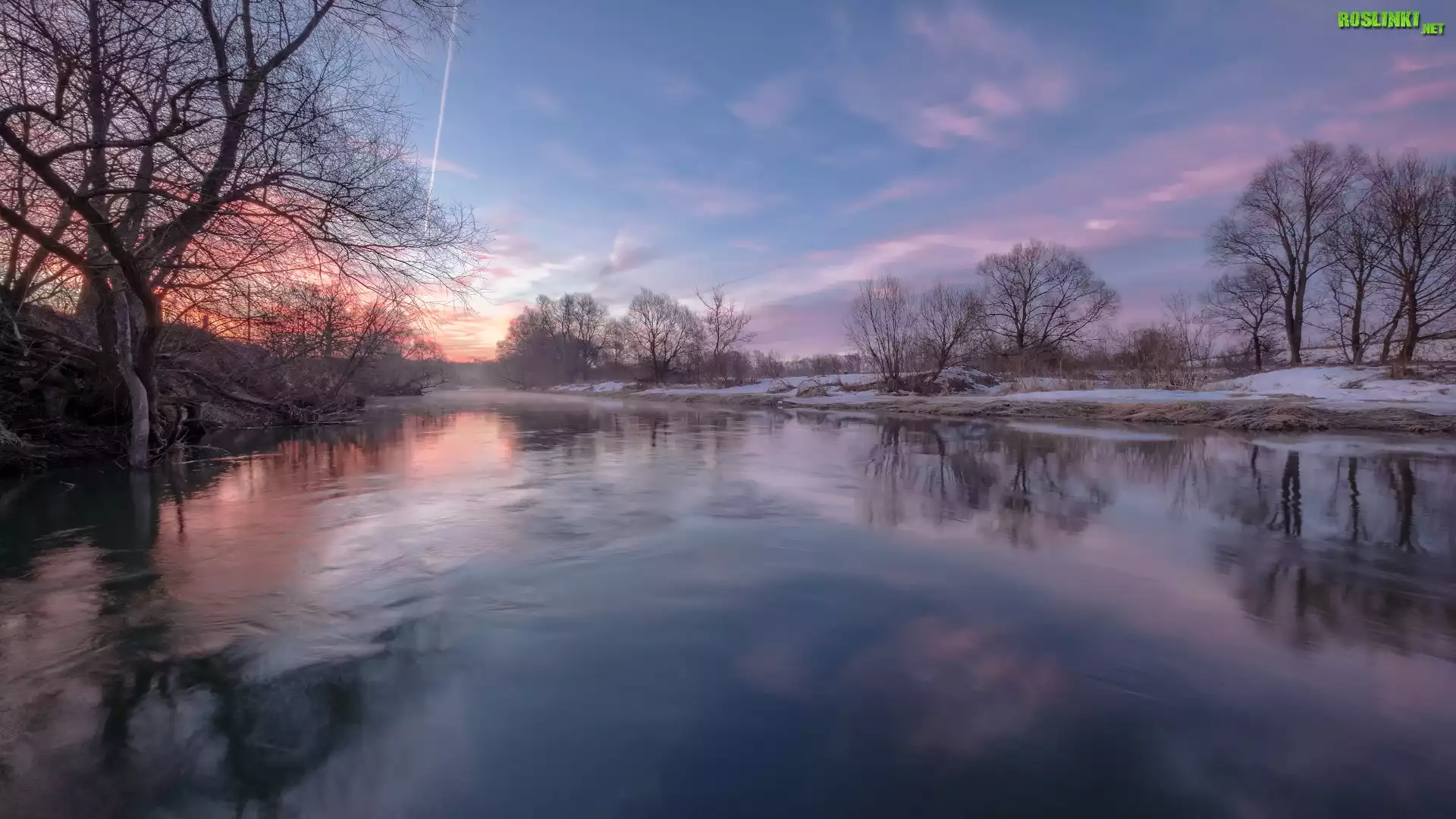 Rośliny: Rzeka, Wschód słońca, Bezlistne, Drzewa