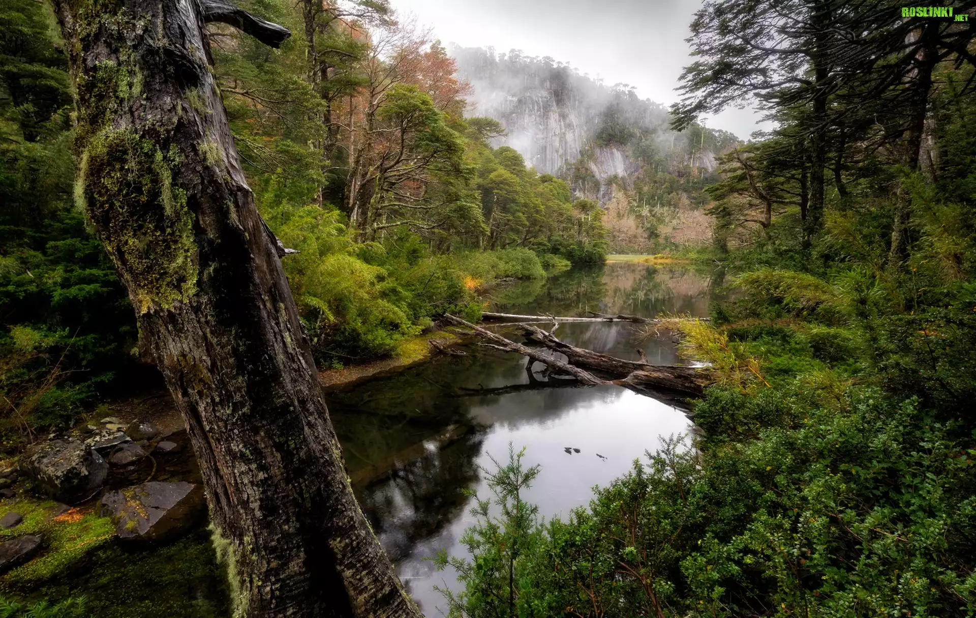 Drzewo, Rzeka, Las, Park Narodowy Huerquehue, Araucania, Chile