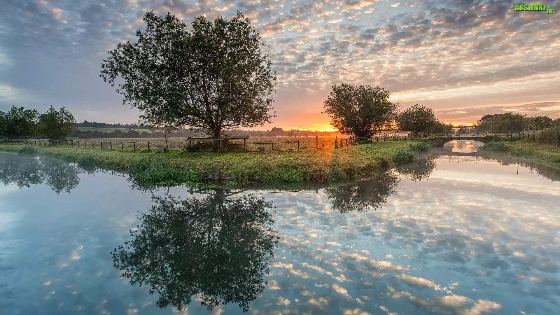 Rośliny: Rzeka, Zachód słońca, Drzewa, Chmury, Odbicie
