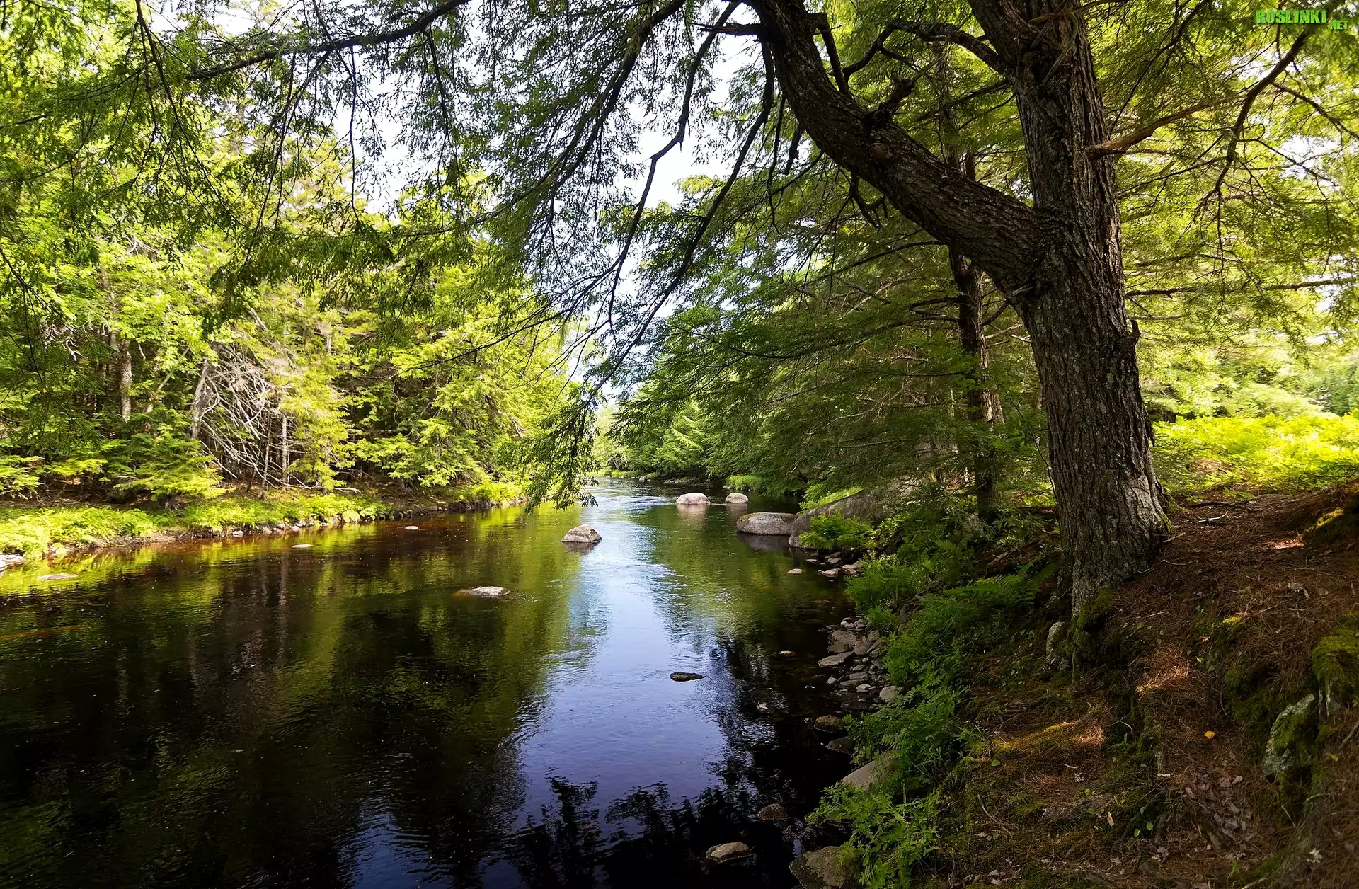 Rośliny: Rzeka, Gałęzie, Drzewa, Kamienie