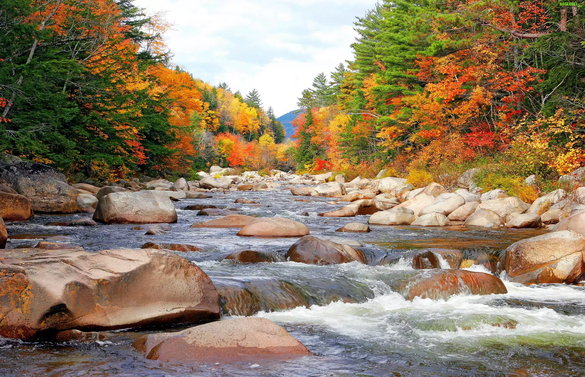 Rośliny: Rzeka, Kamienie, Drzewa, Jesień