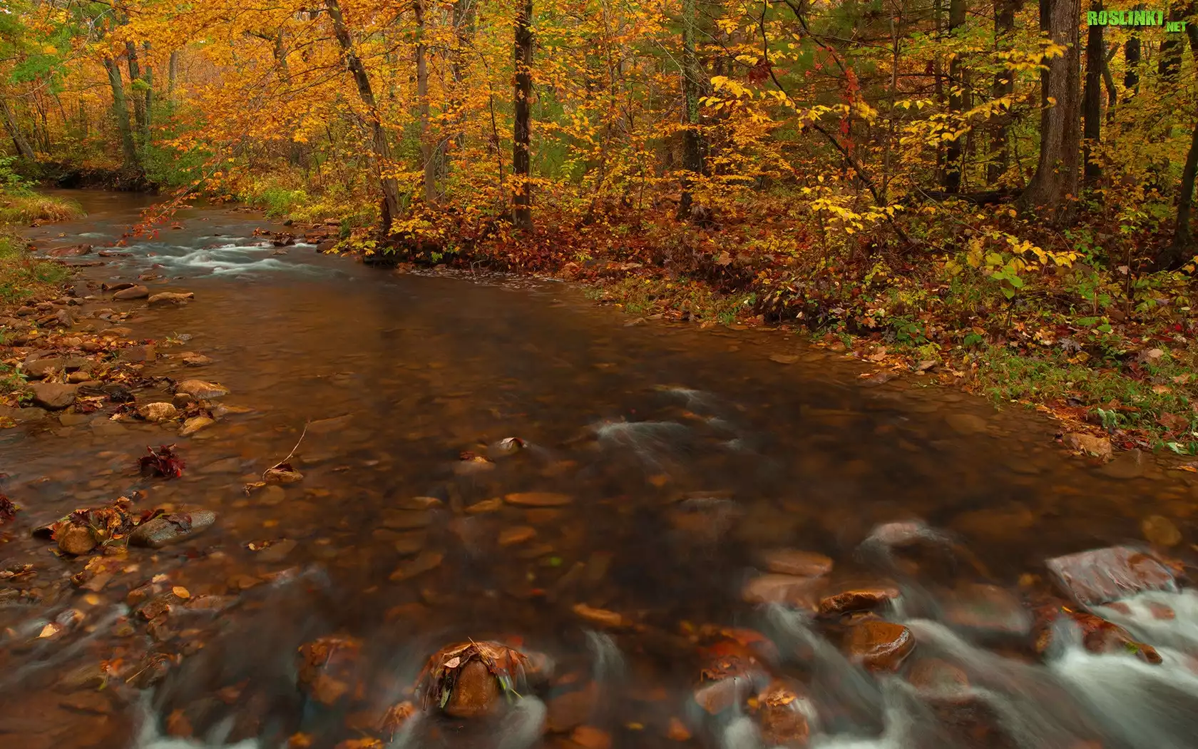 Rośliny: Rzeka, Kamienie, Drzewa, Jesień