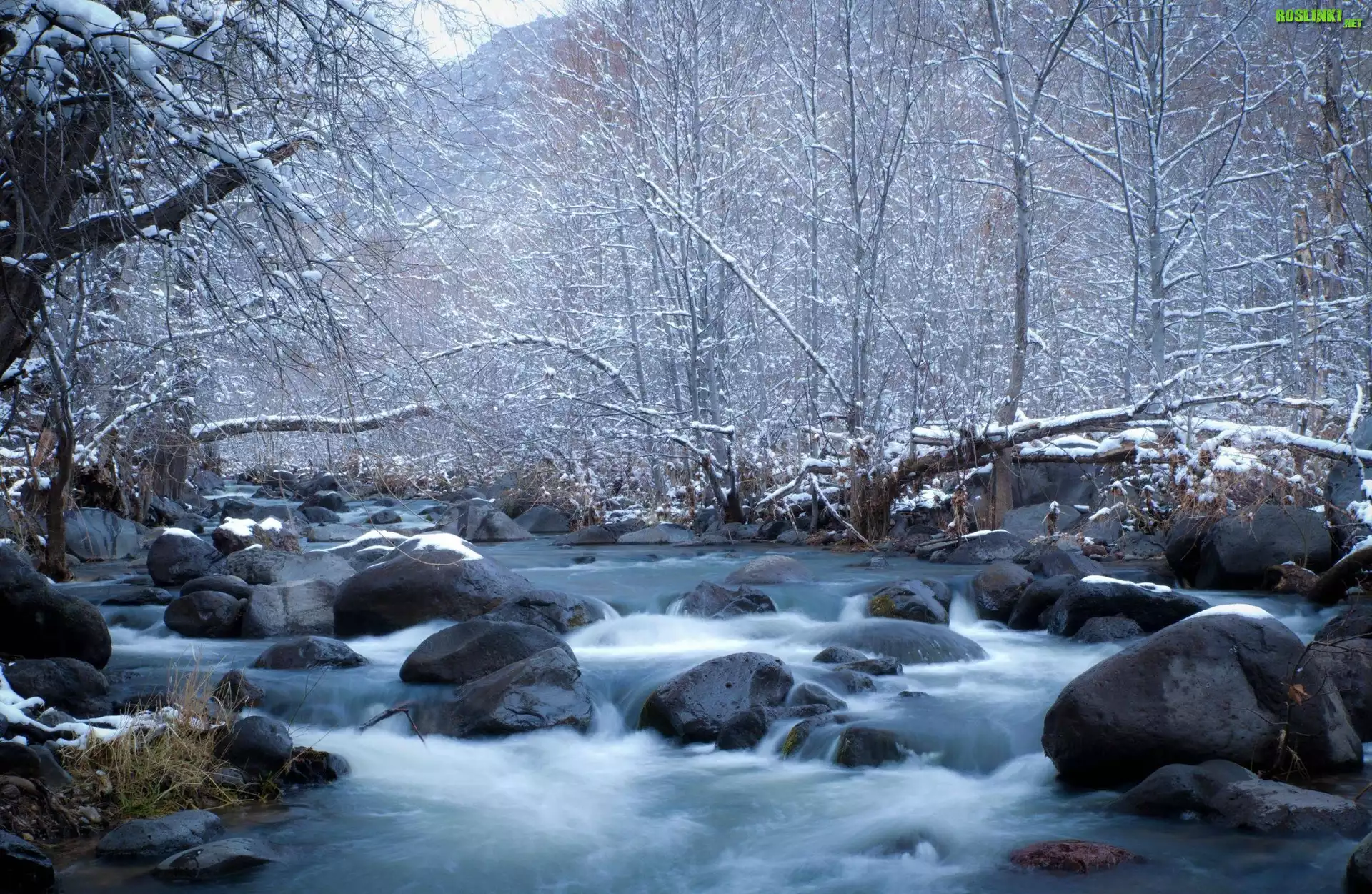 Rośliny: Rzeka, Kamienie, Drzewa, Zima