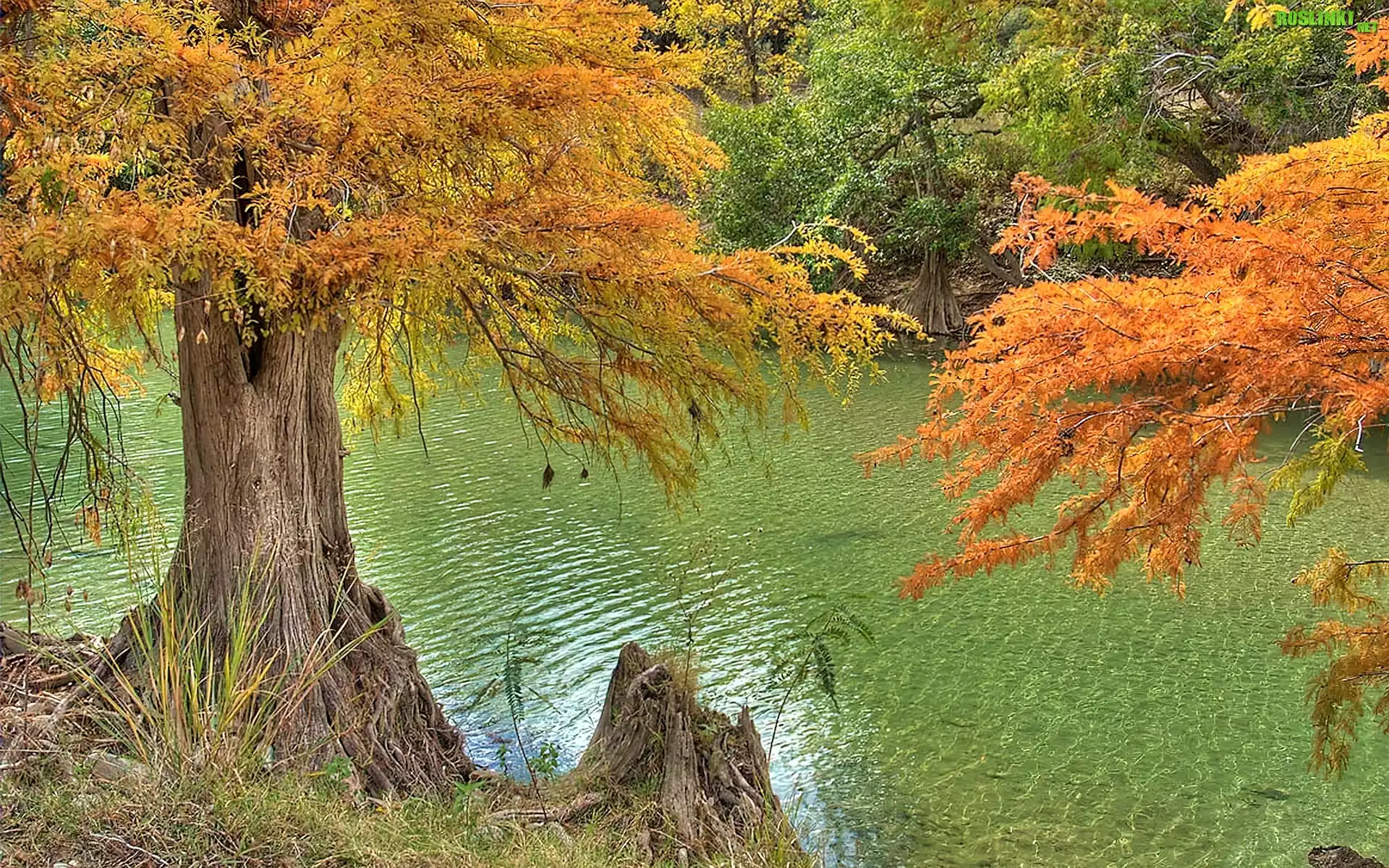 Rośliny: Rzeka, Kolorowe, Drzewa, Jesień