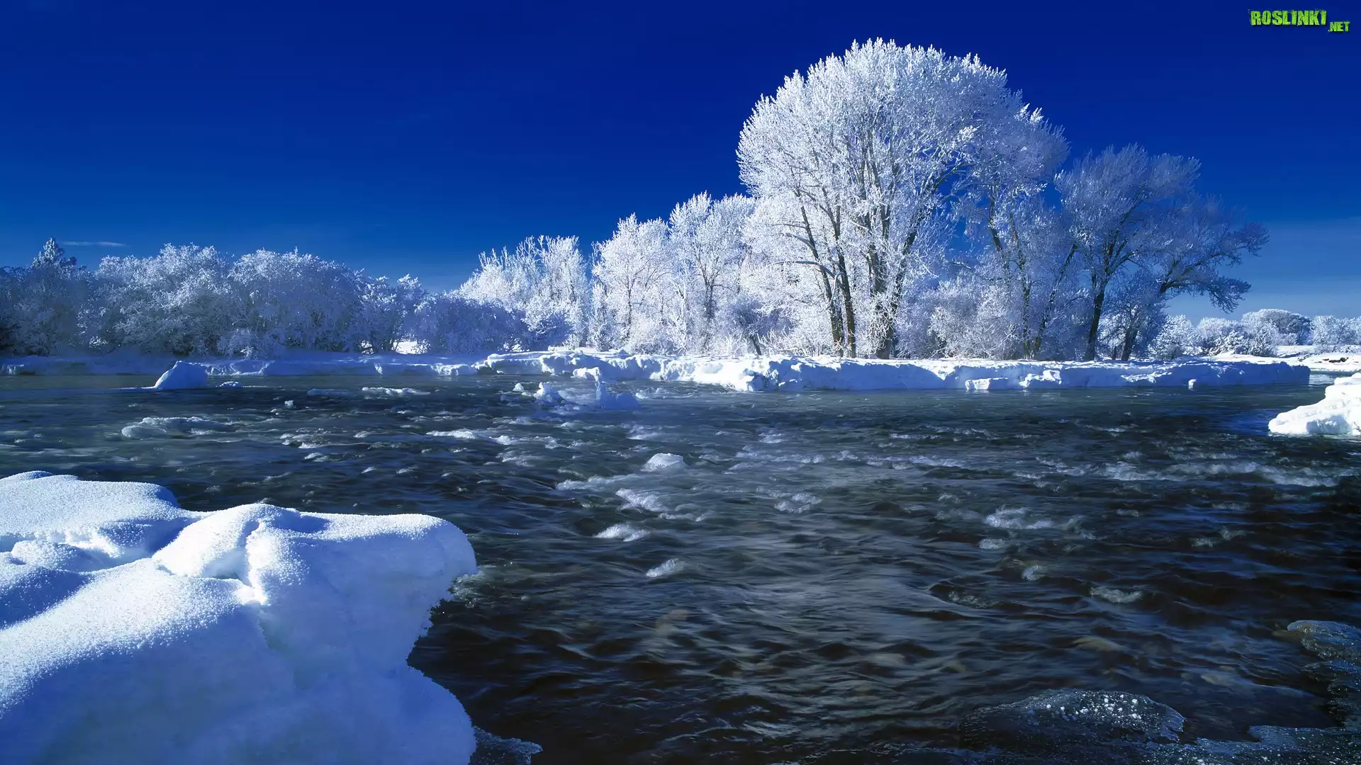 Rośliny: Rzeka, Ośnieżone, Drzewa, Zima