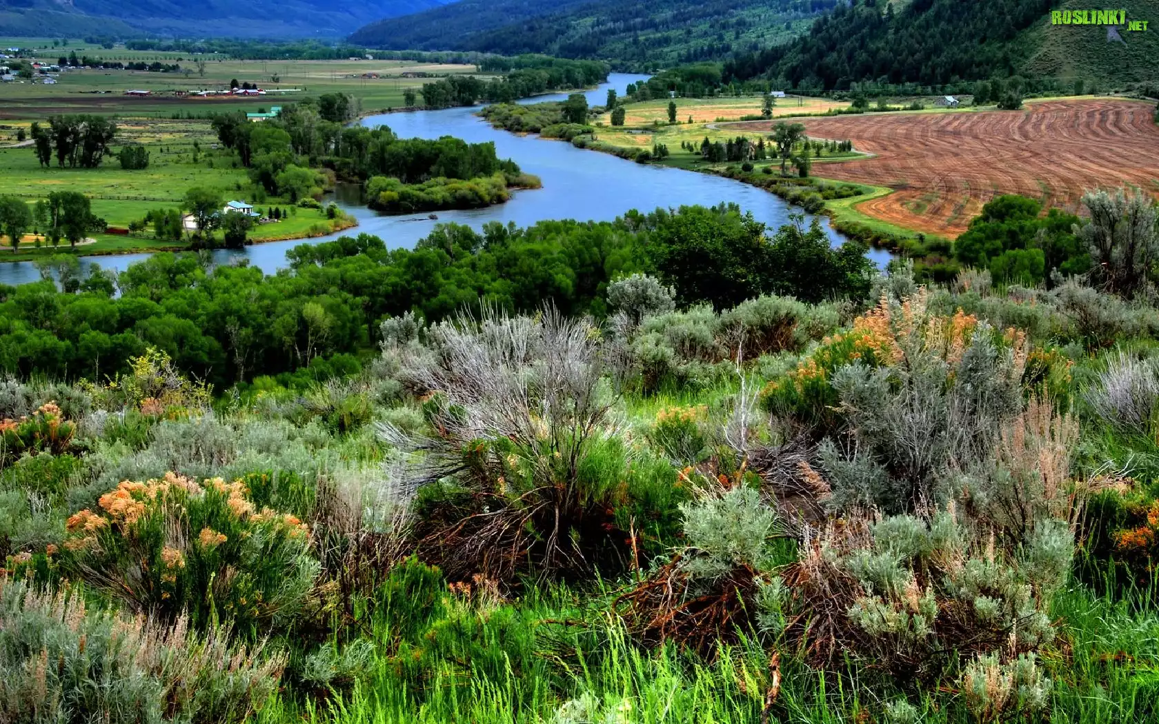 Rośliny: Rzeka, Pola, Drzewa, Roślinność