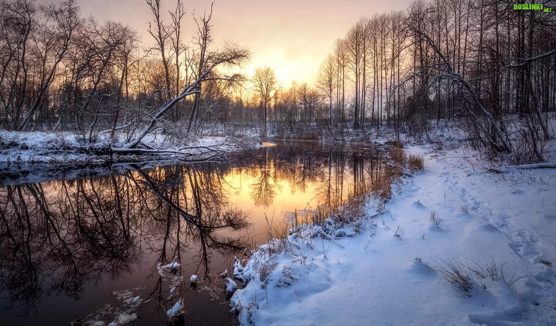 Rośliny: Rzeka, Świt, Zima, Drzewa, Odbicie