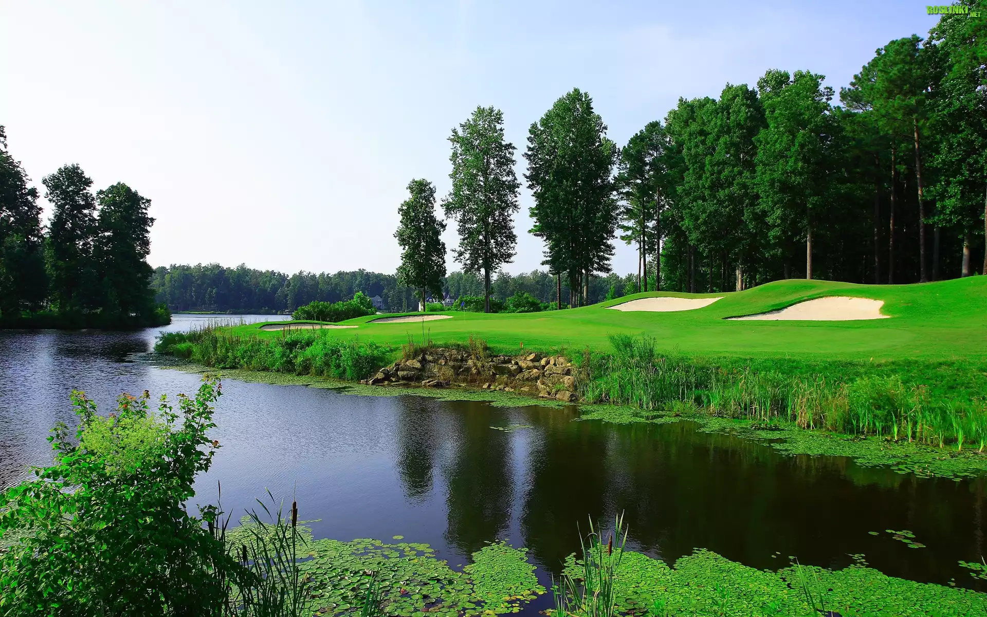 Rzeka, Lasy, Krzewy, Pola, Golfowe, Lato