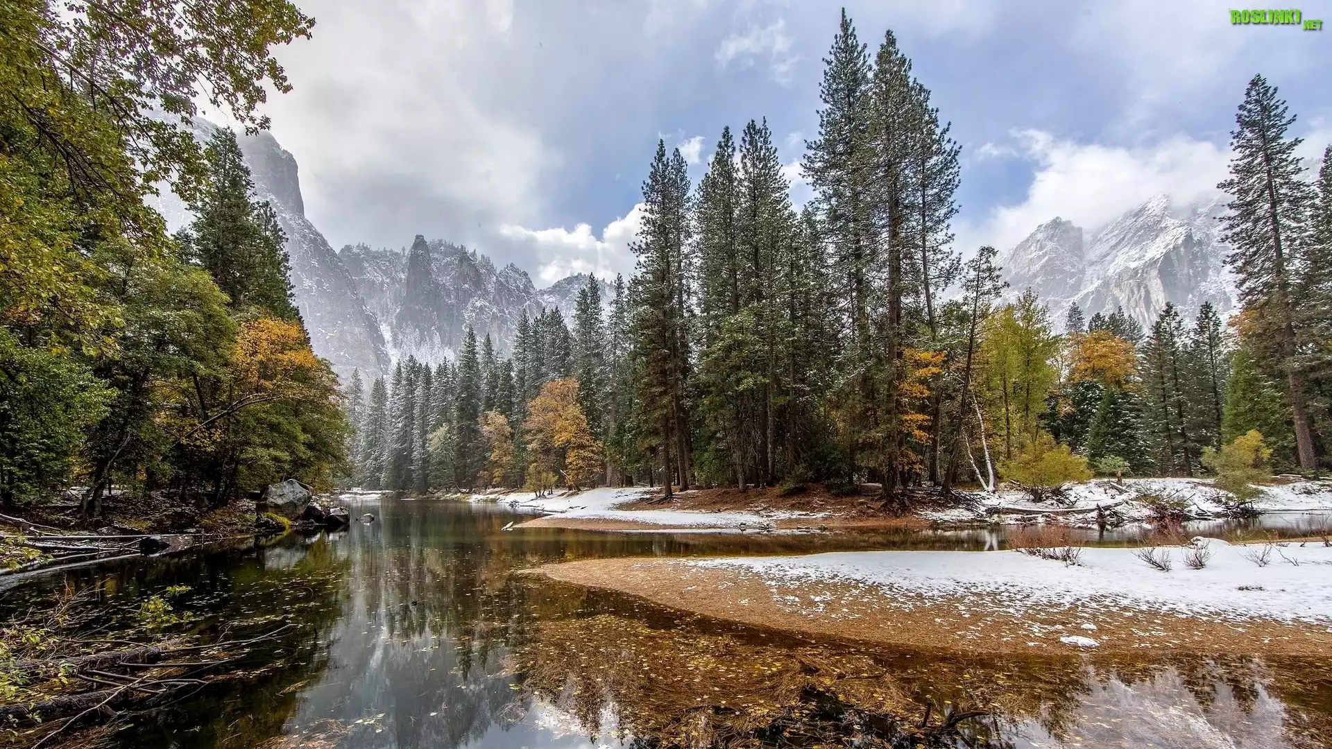 Rośliny: Rzeka, Drzewa, Góry, Śnieg
