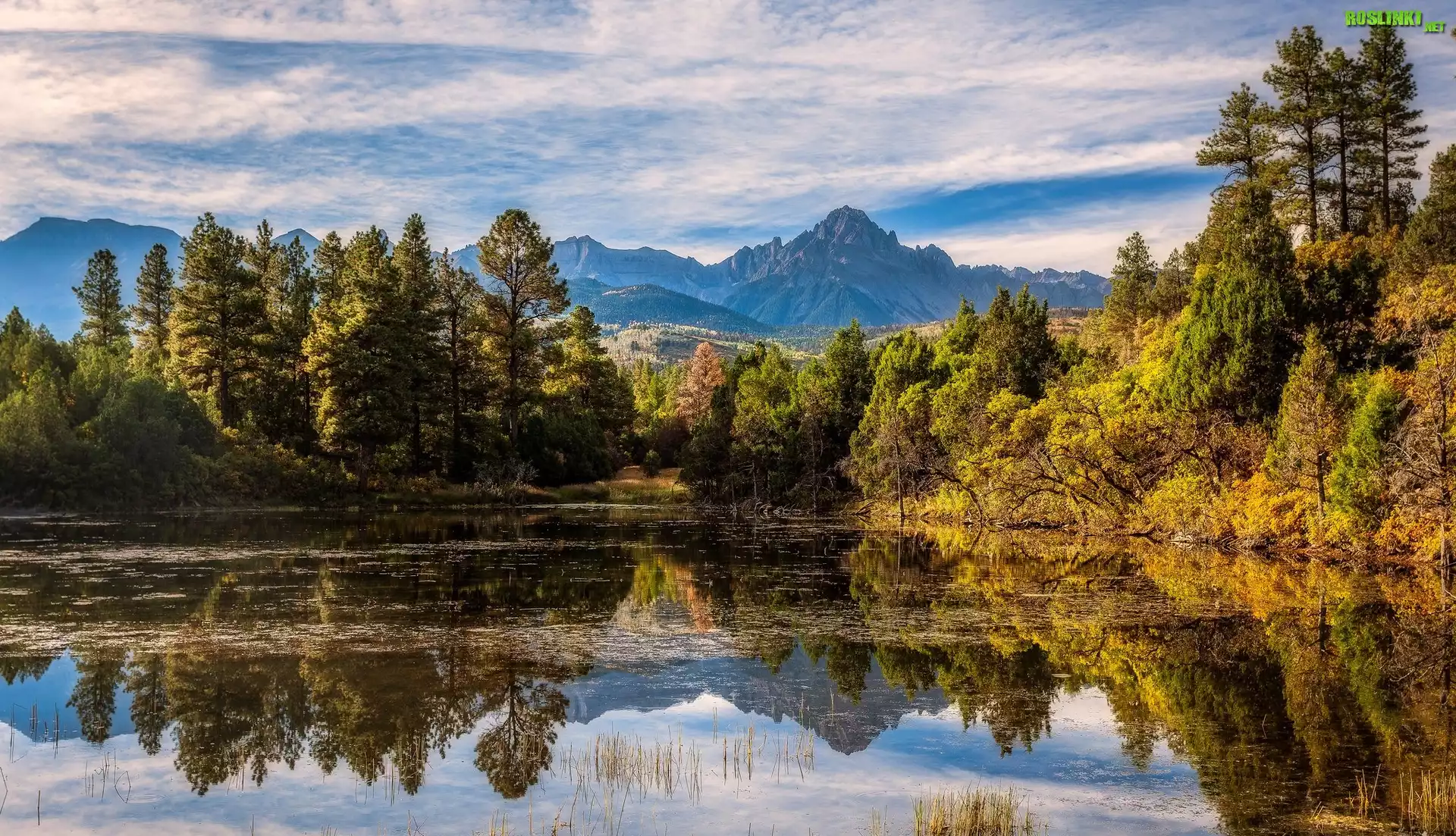 Rośliny: Rzeka, Drzewa, Góry, Odbicie