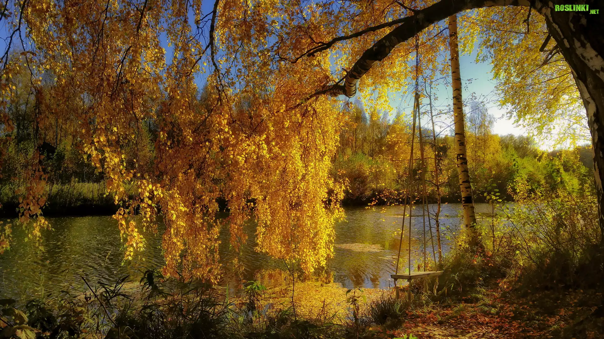 Rośliny: Rzeka, Brzoza, Huśtawka, Jesień