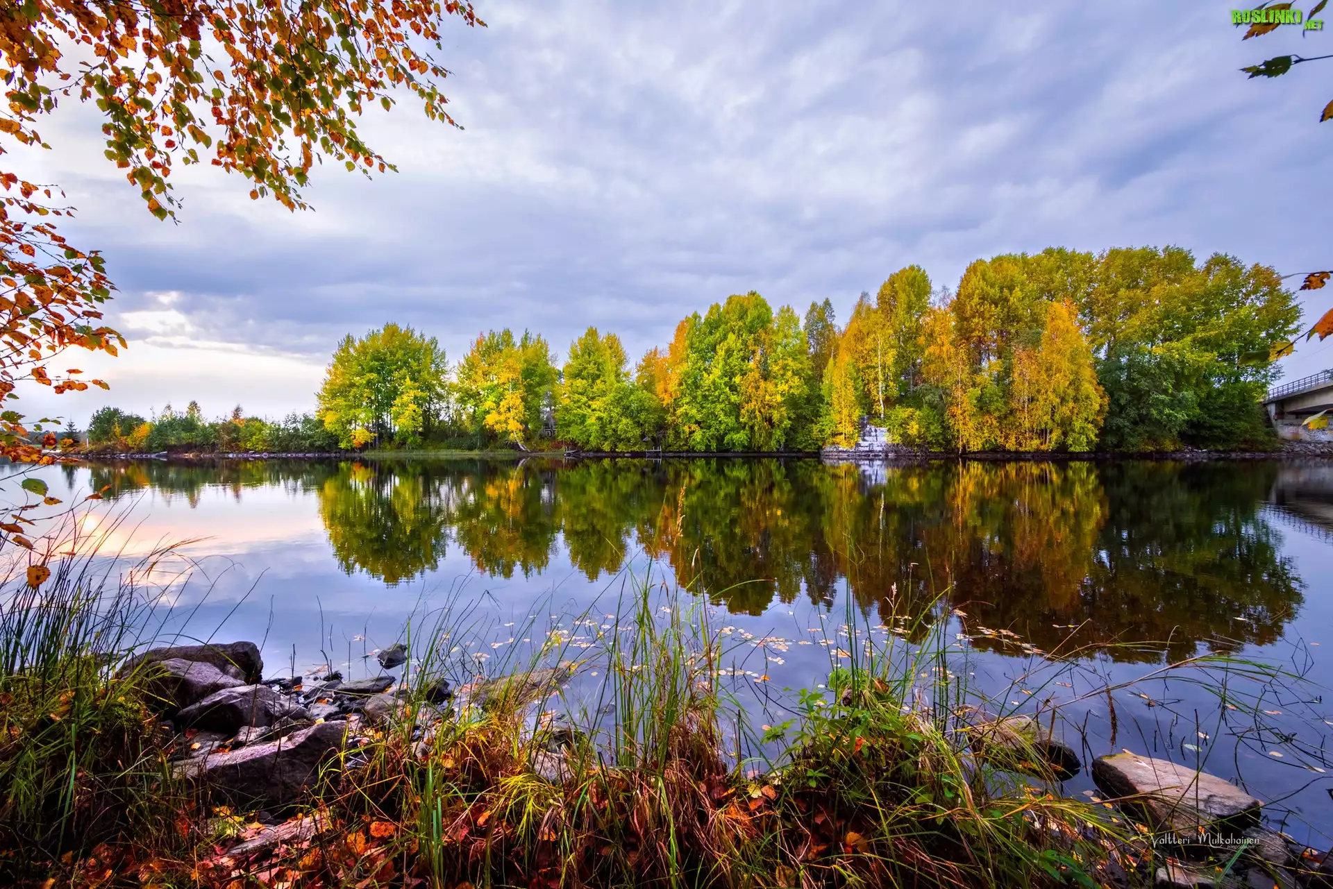 Rośliny: Jesień, Rzeka, Kamienie, Kolorowe, Drzewa