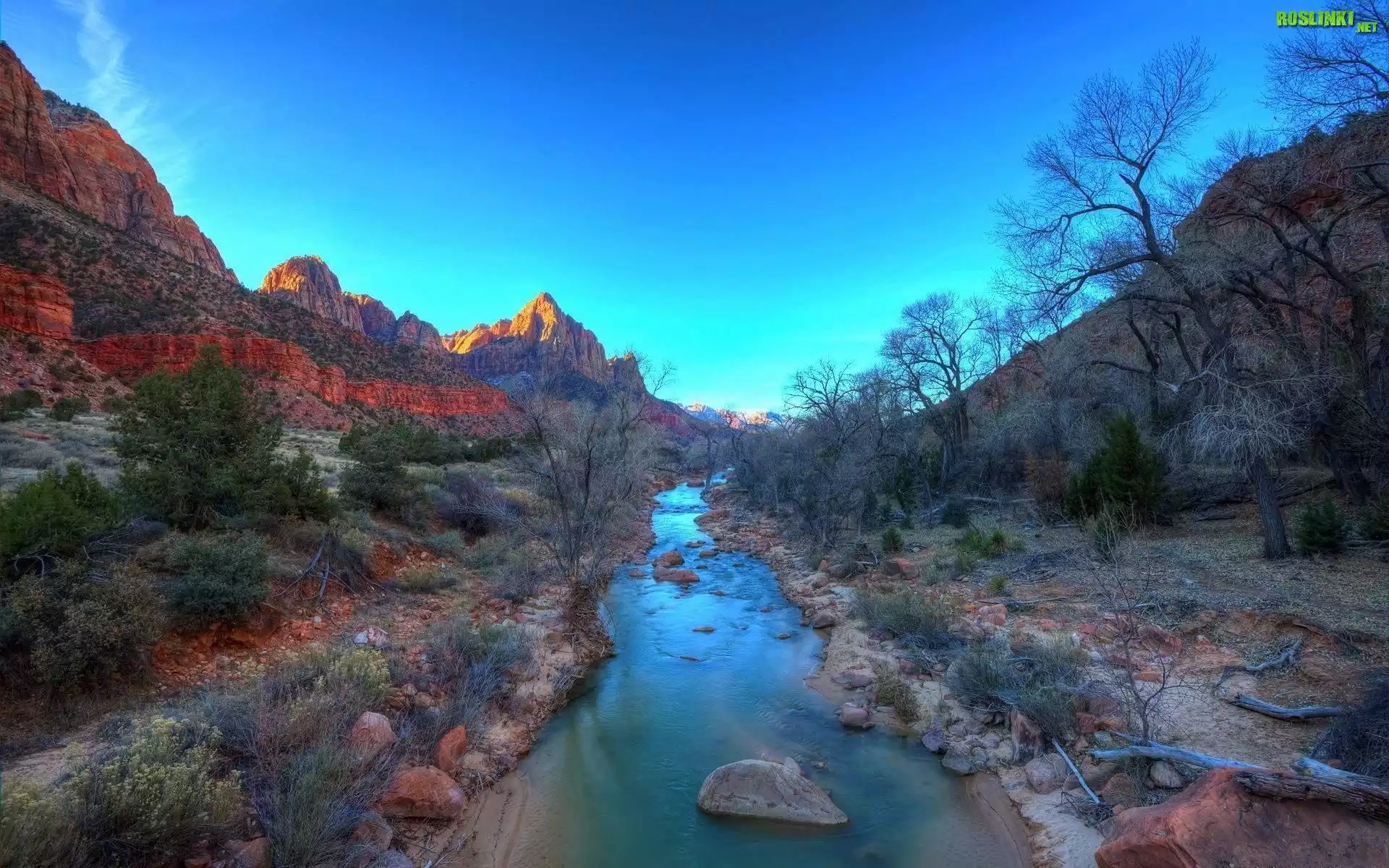 Rośliny: Rzeka, Góry, Kamienie, Drzewa