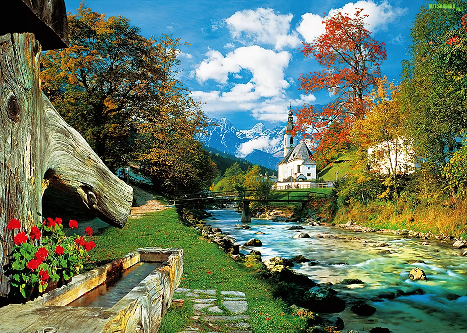 Rośliny: Rzeka, Mostek, Kościółek, Drzewa